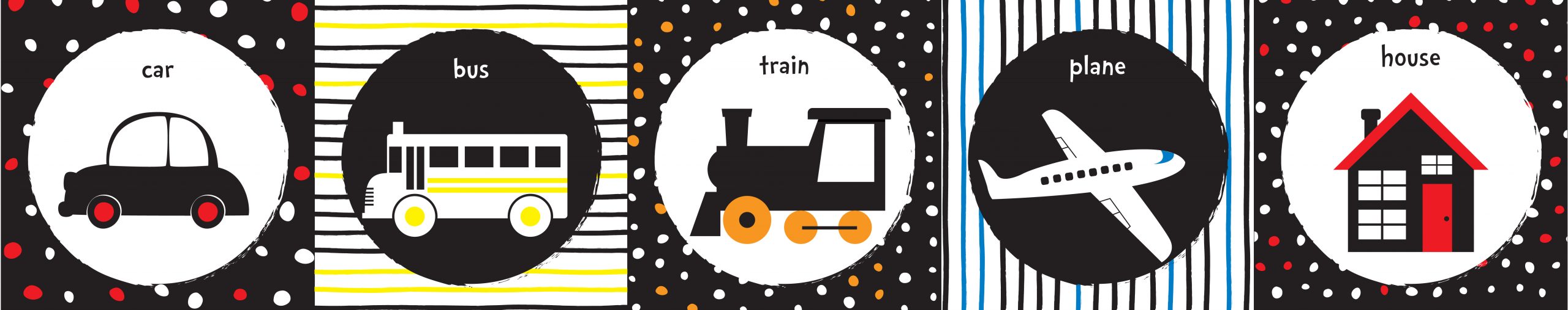 Với màu sắc có độ tương phản cao, chủ đạo là trắng và đen, hình ảnh sáng rõ thu hút sự tập trung, giúp bé nhận diện rõ nét hình dạng và đồng thời kích thích thị giác cho bé.