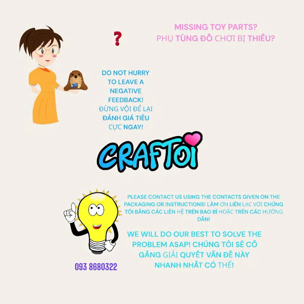 Mua tại Tiktok*** Thông tin sản phẩm Mã hàng: FOX FOXY Tuổi sử dụng: 5+ Kích thước: 19x21cm Một bộ bao gồm: 10 bộ phận làm bằng vải nỉ Bông nhồi Chỉ may và bông nhồi Kim an toàn làm bằng nhựa Bảo quản: trong phòng khô thoáng. Thành phần: polyester, nhựa. Năm sản xuất: 2023 Độ bền của sản phẩm: sử dụng không giới hạn!!! Xuất xứ VIỆT NAM !!!!!!! Được Trung Tâm Giám Định Và Chứng Nhận Hợp Chuẩn Hợp Quy VietCert đánh giá chứng nhận phù hợp Quy chuẩn QCVN 3:2019/BKHCN của Bộ Khoa Học - Công nghệ. Đồ chơi sáng tạo từ nhồi bông. Hãy bắt đầu may con búp bê đầu tiên của bạn!!! Cực kì dễ dàng may với lỗ đục săn và kim làm bằng nhựa rất an toàn. Bé tự may thú bông cho mình Các bạn nhỏ tự tay may vá Vì mất nhiều thời gian tự may, bé sẽ yêu quý con thú bông của mình hơn. Rèn luyện tính kiên nhẫn kỹ năng tư duy logic cho trẻ em Sử dụng vải sang trọng an toàn Mềm mại hơn, thích hợp cho bé chơi Được làm từ bông PP mềm Tự làm thú nhồi bông sẽ giúp trẻ nâng cao kỹ năng tập trung, khéo léo của đôi bàn tay. Đồng thời giúp trẻ trân trọng và nâng niu hơn những gì do chính tay mình làm ra. Bộ sản phẩm handmade Sewing giúp trẻ em tự làm thú nhồi bông một cách dễ dàng. Rất đơn giản, trẻ có thể dễ dàng dùng KIM NHỰA khâu các miếng nỉ được đã đục lỗ sẵn cùng với chỉ thêu đính kèm, và sau đó nhồi thêm bông để tạo ra một con vật vô cùng đáng yêu. Mẹ hãy giúp em thực hiện món đồ này để có những kỉ niệm thật vui với nhau nha! Tất cả đã gói gọn trong bộ sản phẩm tự làm thú nhồi bông của Craftoi, vô cùng an toàn và lại rất dễ. FOX FOXY Creativity set. Stuffed toy. Sewing my first doll !!! Easy to sew with a prepunched holes and safety plastic needle. 5+ DIMENSIONS: 19x21 cm THE SET INCLUDES: 10 FELT PARTS STUFFING THREADS SAFETY PLASTIC NEEDLE Storage: in dry ventilated rooms. Materials: polyester, plastic. Service life is not limited !!! MADE IN VIETNAM Has been assessed to conform to the Standard OCIN 3:2019 BKHCN of the Ministry of Science and Technology by VIETCERT CERTIFICATION AND INSPECTION CENTRE