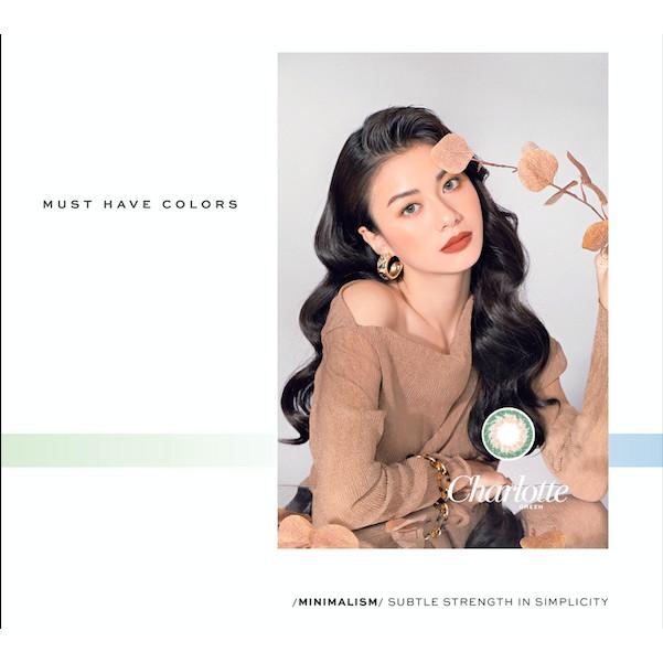 Charlotte - Xám xanh lá, tone Tây vân xoáy cam nhẹ, lên mắt có ánh xanh ngọc phù hợp với mọi gương mặt giúp mắt sâu, sắc sảo và thu hút hơn.