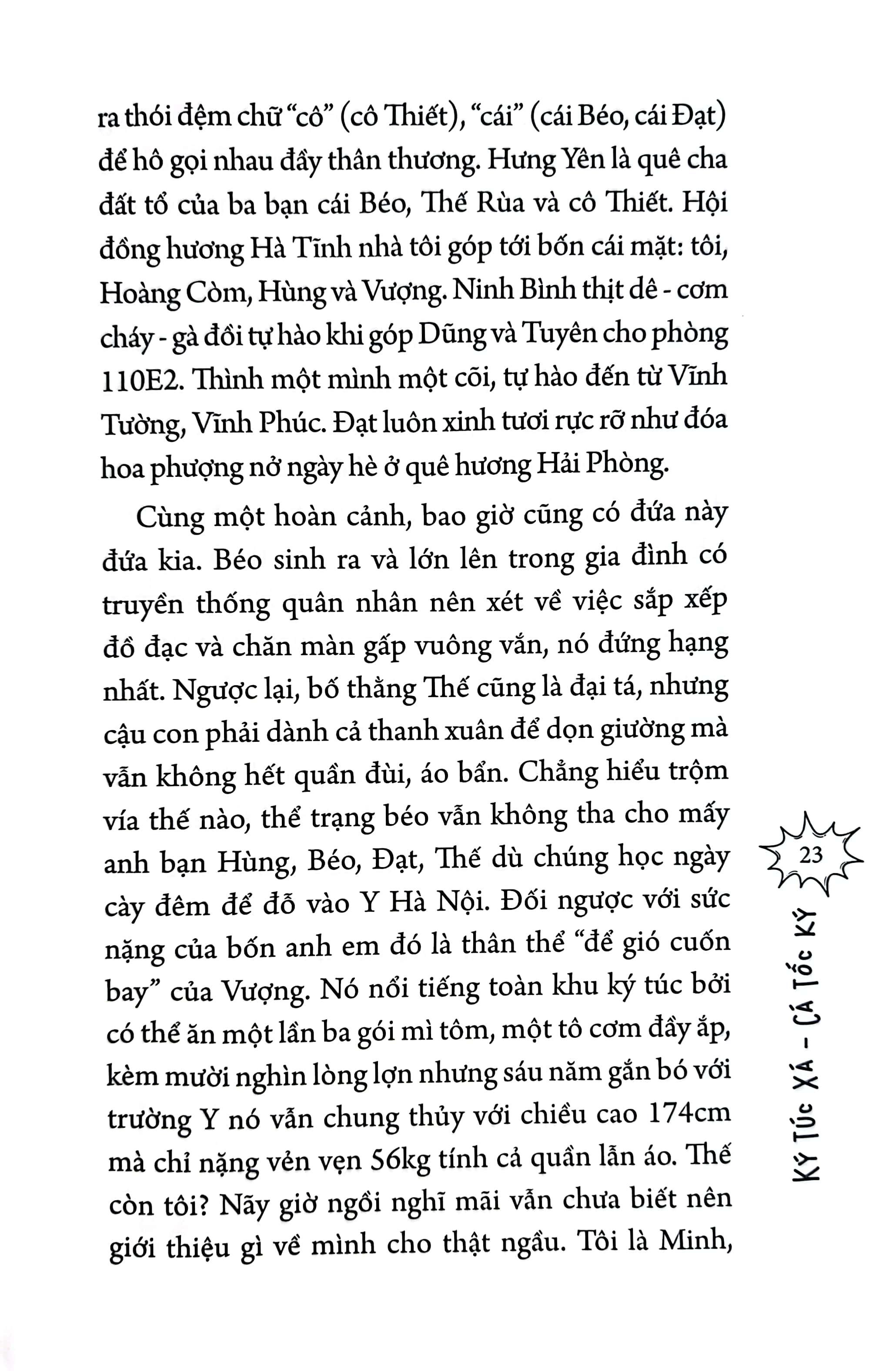 Phần lớn những lời giới thiệu sẽ do tác giả cuốn sách mời đọc và xin đôi dòng cảm nhận với tư cách là những độc giả đầu tiên, nhưng lời giới thiệu này được viết ra do tôi đi “xin xỏ” tác giả mà có. Ngay từ khi Minh Cá lên ý tưởng viết một cuốn sách về cuộc sống ký túc xá - nơi chúng tôi có 6 năm gắn bó, tôi đã chủ động đề nghị: “Cậu ạ! Sau này tôi sẽ viết lời giới thiệu cho cuốn sách nhé? Nếu cậu thấy không ưng, tôi xin phép tự in và đóng vào cuốn sách của cậu xem như phần phụ lục hoặc hiệu đính vậy”.