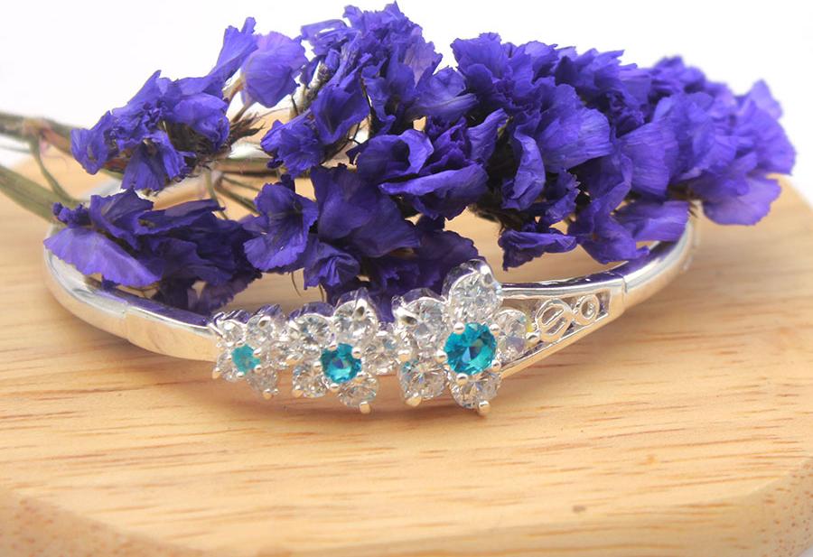 Vòng , Lắc Tay Nữ BẠC HIỂU MINH LTU315 Dạng Kiềng Hoa Đá Xanh Lấp Lánh