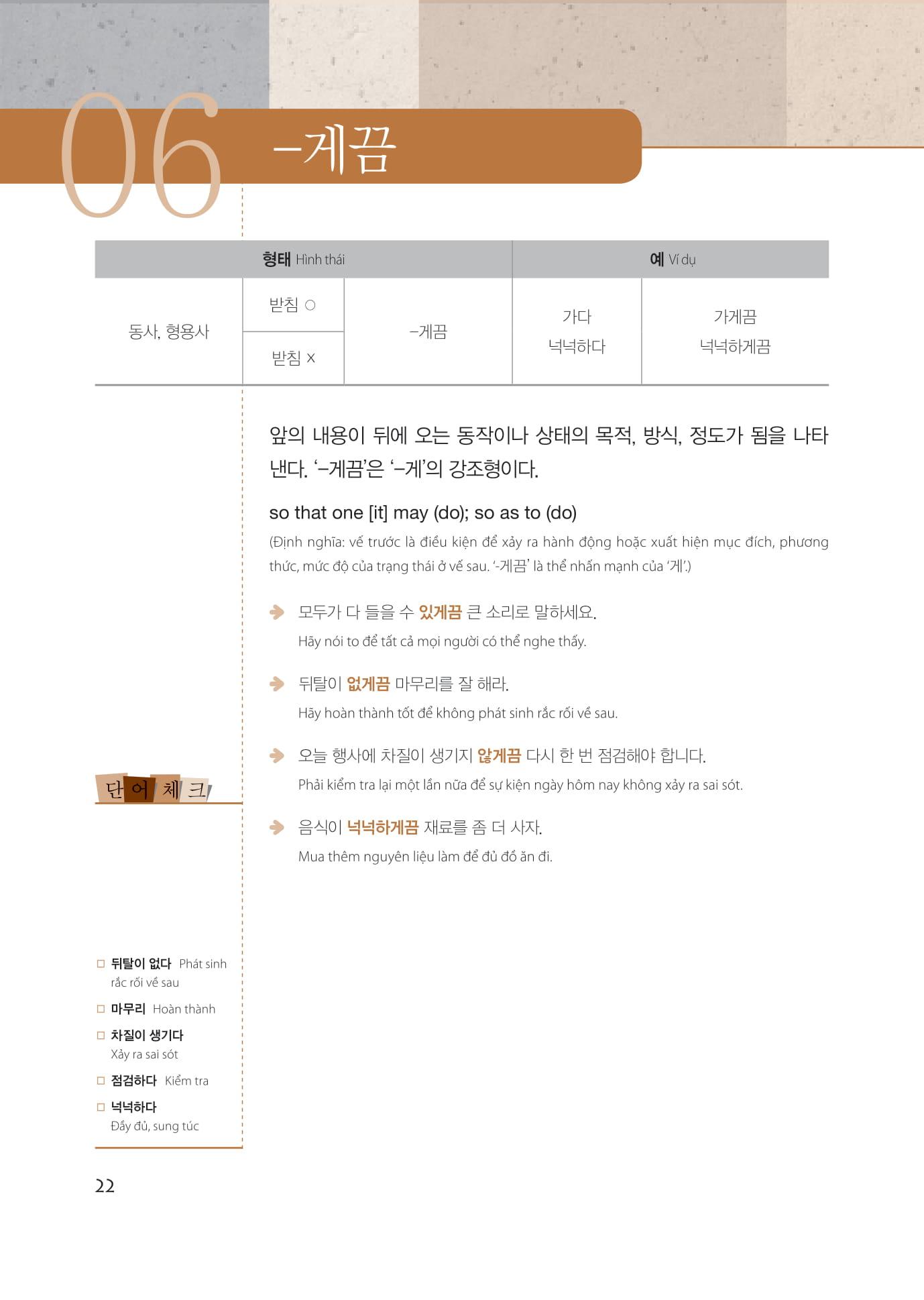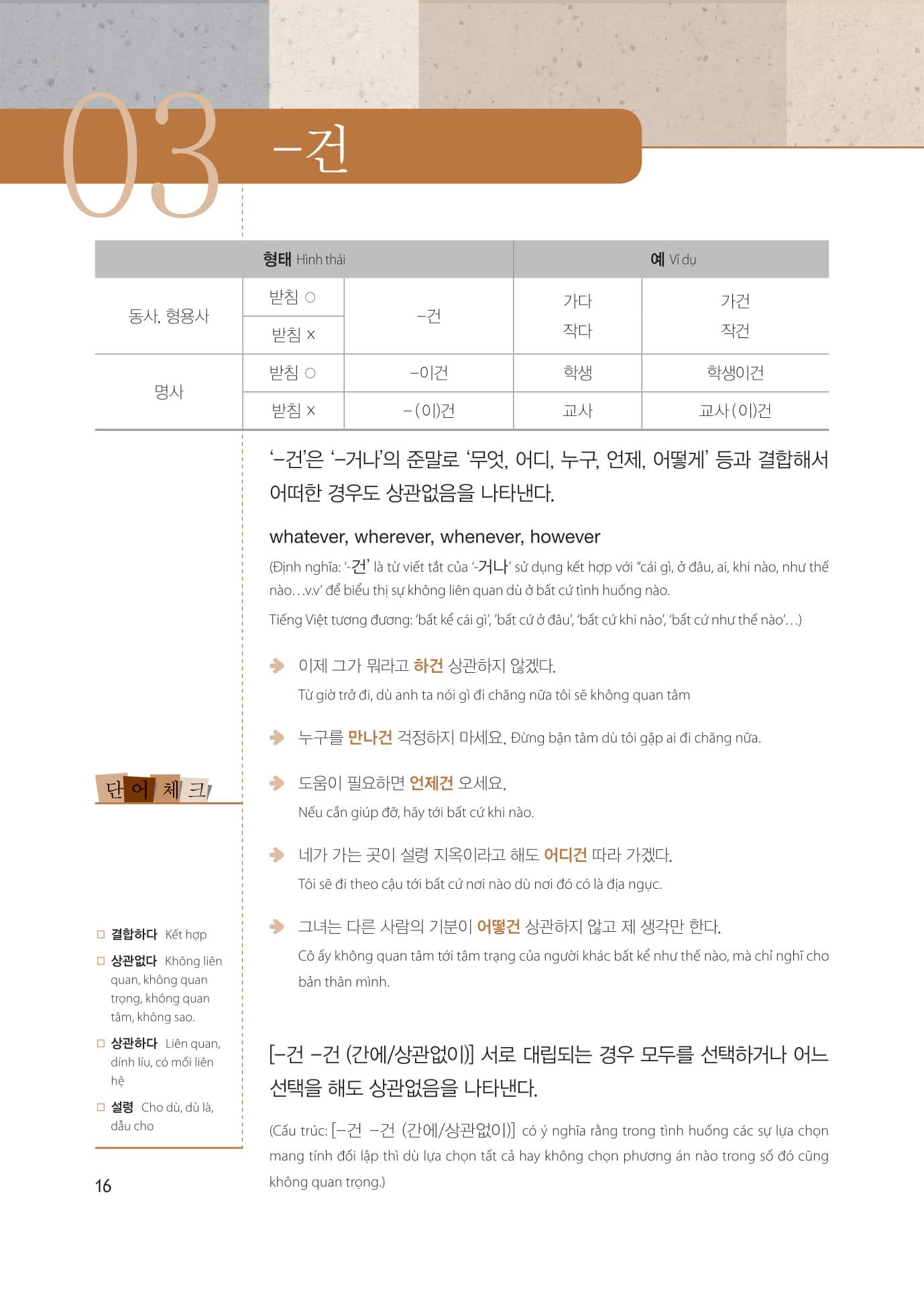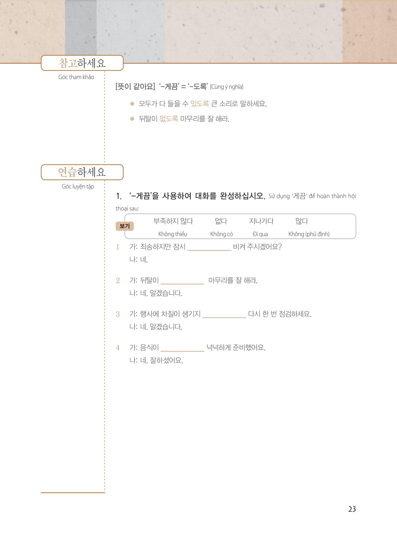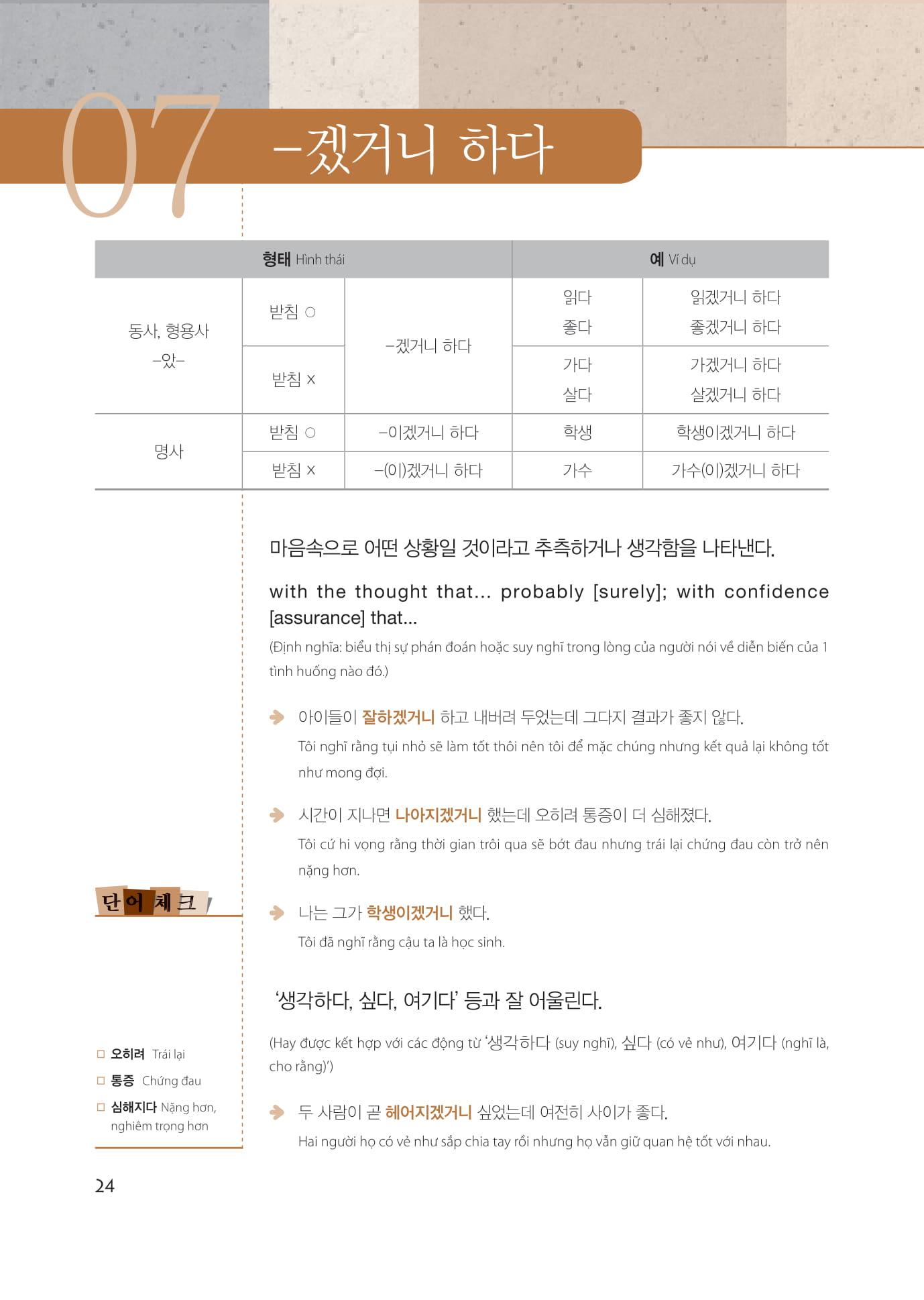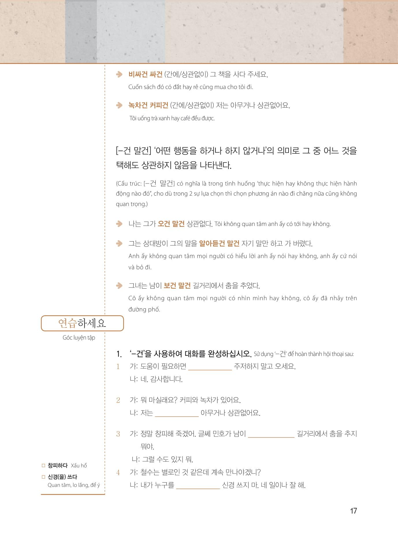 Cung cấp kho từ vựng, ví dụ đa dạng, cũng như các dạng bài tập điển hình giúp người học làm quen chính xác ý nghĩa và cách sử dụng tiếng Hàn