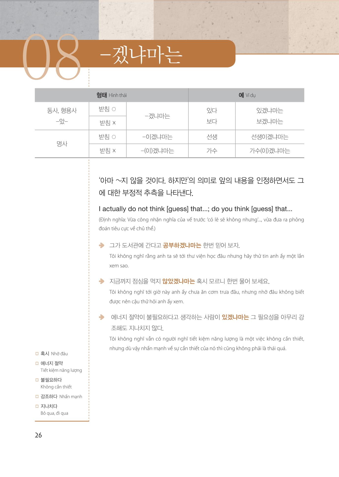 Chúng tôi hi vọng cuốn sách này sẽ hữu ích cho những người muốn học chính xác ngữ pháp tiếng Hàn Quốc một cách có hệ thống .