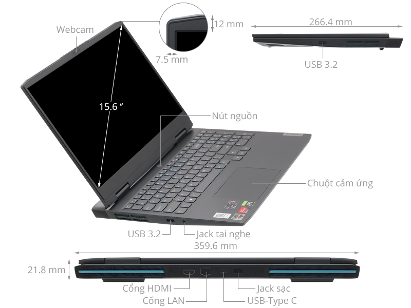 CPU AMD Ryzen 7 6800H Mobile Processor (3.2GHz Up to 4.7GHz, 8Cores, 16Threads, 16MB Cache) Memory 16GB DDr5 Bus 4800Mhz (2 Slot, 8GB x 02, Max 32GB Ram) Hard Disk 512GB PCIe NVMe M.2 SSD Gen 4.0x4 (Support x 1 Slot SSD M2 PCIe) VGA NVIDIA GeForce RTX 3050 Ti 4GB GDDR6 Boost Clock 1485MHz TGP 85W Display 15.6 inch Full HD (1920 x 1080) IPS 250 Nits Anti-Glare 120Hz 45% NTSC Free-Sync DC Dimmer Other Stereo Speakers Nahimic Audio, Camera HD 720p with Privacy Shutter, 4-Zone RGB Backlit English, 2x USB 3.2 Gen 1, 1x USB-C 3.2 Gen 2 (Support data transfer, Power Delivery 3.0, and DisplayPort 1.4), 1x HDMI 2.0, 1x Ethernet (RJ-45), 1x Headphone / Microphone Combo Jack (3.5mm), Firmware TPM 2.0 Wireless Wi Fi 6 (802.11ax) + Bluetooth 5.1 Battery 4 Cells 60 Whrs Battery Weight 2,30 Kg SoftWare Windows 11 Home SL 64bit Xuất xứ Brand New 100%, Hàng Phân Phối Chính Hãng Tại Việt Nam, Bảo Hành Chính Hãng Màu sắc Onyx Grey Bảo hành 24 tháng