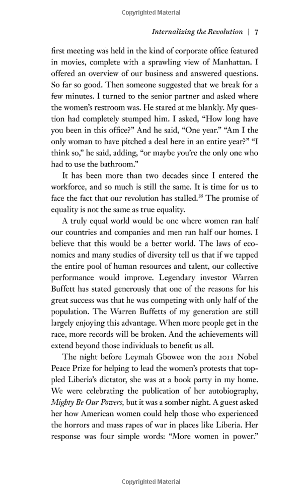 Lean In Thirty years after women became 50 percent of the college graduates in the United States, men still hold the vast majority of leadership positions in government and industry. This means that ...