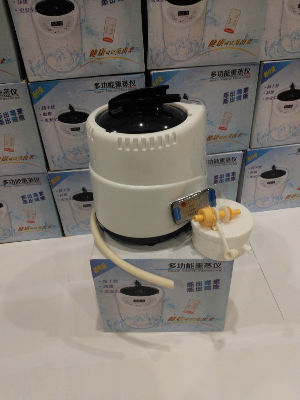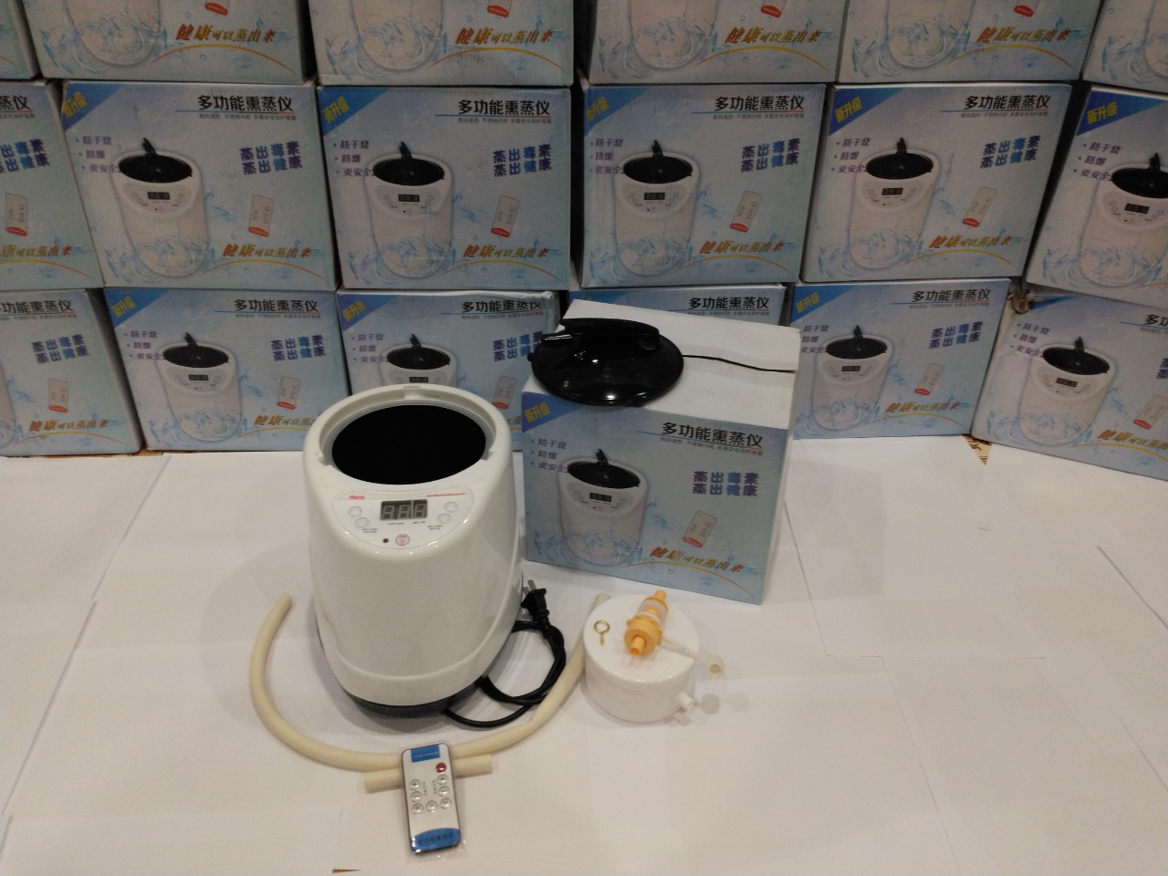 - Nồi xông hơi – Điện áp nồi tạo hơi(máy xông) : 220V – Công suất nồi tạo hơi(máy xông): 1000W – Dung tích nồi tạo hơi 2l – Đồng hồ hẹn giờ: 0 –60 phút ( Có thể điều chỉnh trực tiếp trên nồi hoặc bằng Điều khiển từ xa) – Có nút điều chỉnh lượng hơi nhiều hay ít – Thời gian làm sôi: 5 – 10 phút (phụ thuộc vào lượng nước) – Cân nặng: 2.2 kg