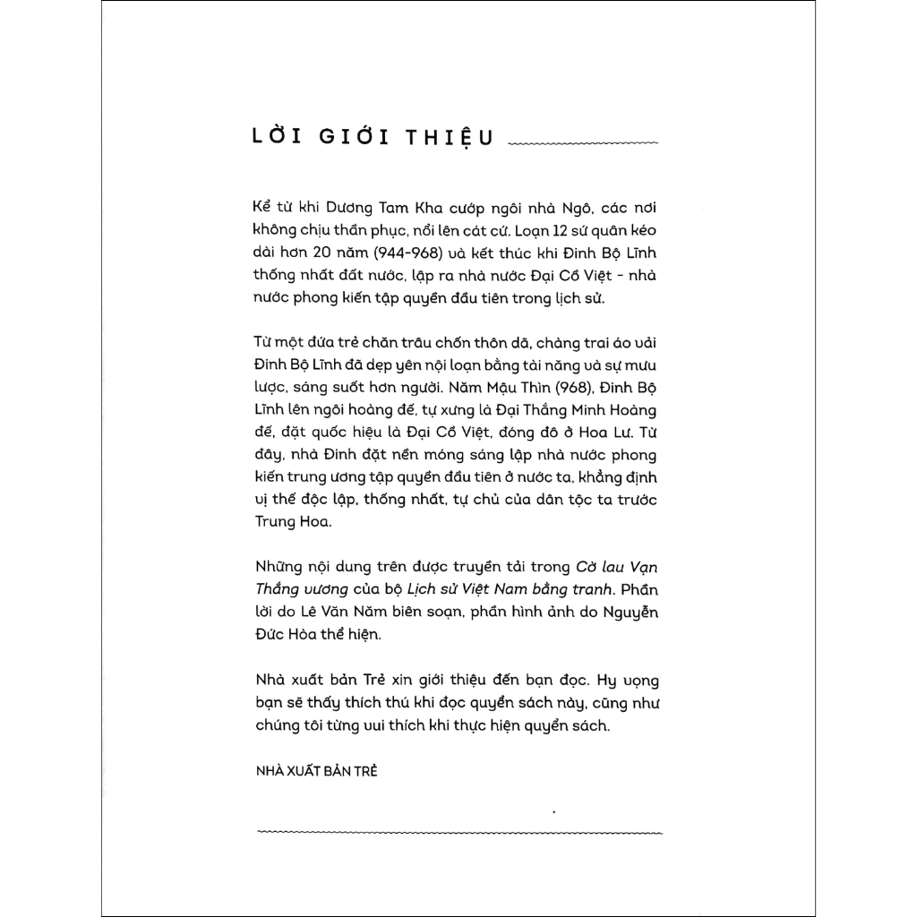 Mua tại TiktokTừ một đứa trẻ chăn trâu nơi chốn thôn dã, chàng trai Đinh Bộ Lĩnh đã dẹp yên nội loạn bằng tài năng, mưu lược, sáng suốt hơn người. Năm Mậu Thìn (968), Đinh Bộ Lĩnh lên ngôi Hoàng đế, tự xưng là Đại Thắng Minh Hoàng đế, đặt quốc hiệu là Đại Cồ Việt, đóng đô ở Hoa Lư. Từ đây, nhà Đinh đặt nền móng sáng lập nhà nước phong kiến trung ương tập quyền đầu tiên ở nước ta, khẳng định vị thế độc lập, thống nhất, tự chủ của dân tộc ta trước Trung Hoa .