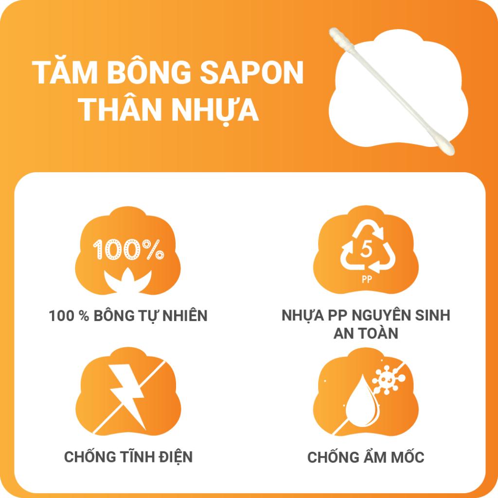 Mua tại Tiktok- ĐẶC ĐIỂM SẢN PHẨM 1.1. Tiệt trùng bằng công nghệ sốc nhiệt tự động, kháng khuẩn vượt trội Toàn bộ phần bông và thân que của Tăm bông Nova được tiệt trùng bằng công nghệ sốc nhiệt tự động nhập khẩu từ Thụy Sĩ, mang lại khả năng kháng khuẩn vượt trội, an toàn khi sử dụng. 1.2. 100% bông cotton thuần tự nhiên, mềm mại, thấm hút nhanh Phần đầu bông được sản xuất từ nguyên liệu 100% bông cotton, cho khả năng thấm hút tối ưu. Sản phẩm thấm hút nhanh chóng chất lỏng, dịch bẩn trong quá trình vệ sinh cá nhân hay vệ sinh vật dụng, giúp bề mặt cần vệ sinh được khô ráo, ngăn ngừa nấm mốc và vi khuẩn phát triển. 1.3. Dây chuyền sản xuất hàng đầu thế giới, nhập khẩu từ Thụy Sĩ Đây là dây chuyền tiên tiến bậc nhất hiện nay trong lĩnh vực sản xuất tăm bông. Sản phẩm làm ra có chất lượng cao và đồng đều. Toàn bộ quá trình sản xuất được thực hiện khép kín, đảm bảo vệ sinh và độ an toàn cho sản phẩm. 1.4. Tích hợp thông minh với 2 kiểu đầu bông trong 1 sản phẩm Tăm bông Nova được thiết kế thông minh với 2 đầu bông khác biệt: 1 đầu hình tròn, 1 đầu dạng xoắn. Đầu bông tròn có tác dụng thấm hút nhanh. Đầu bông còn lại có dạng xoắn với các rãnh nhỏ, rất hiệu quả trong việc tiếp xúc và giữ chặt chất bẩn vào bông, mang lại hiệu quả vệ sinh tối ưu. 1.5. Thiết kế an toàn khi sử dụng