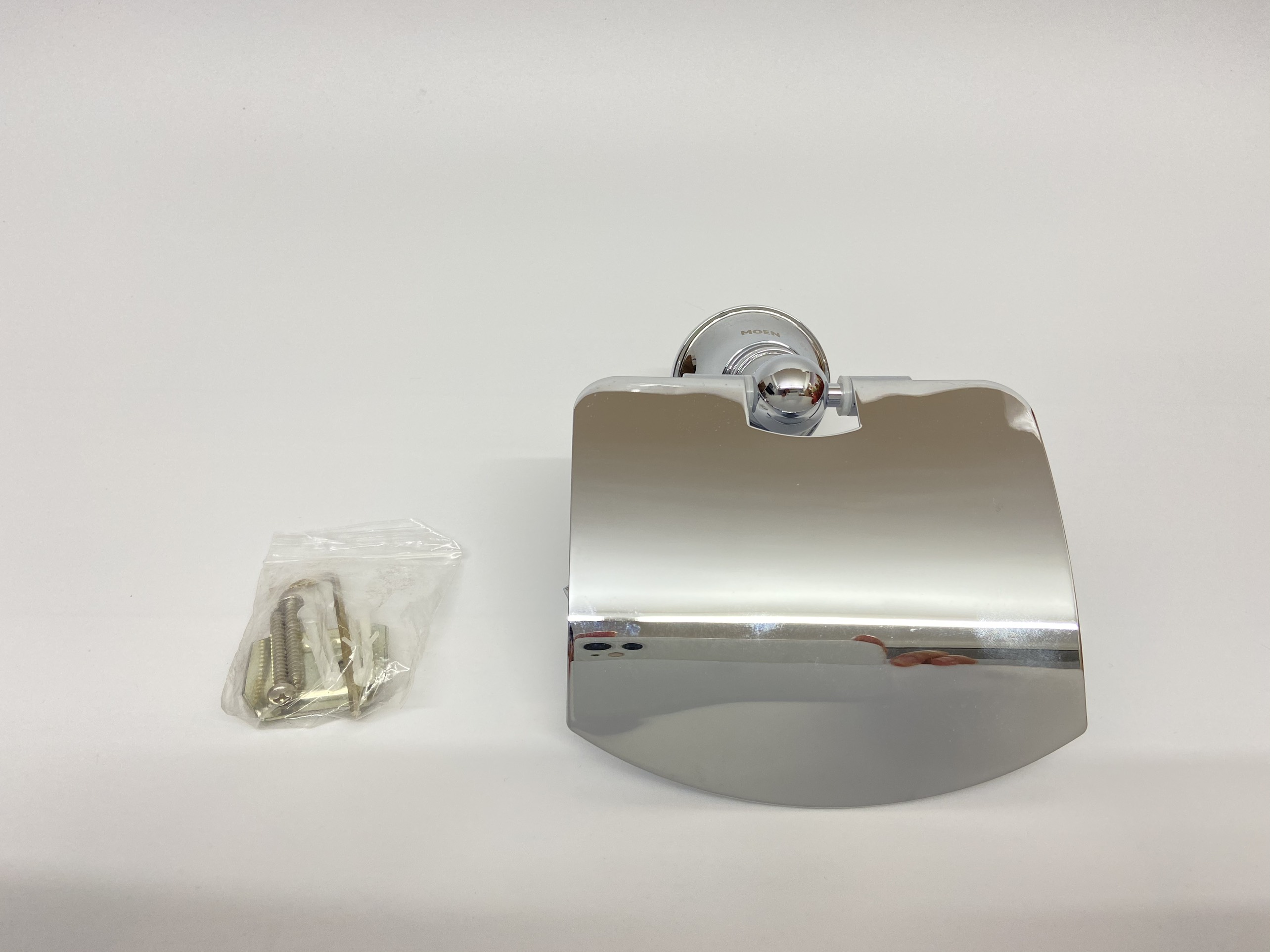 Thương hiệu Moen số 1 tại Mỹ Lô giấy vệ sinh có tấm che chống văng nước bảo vệ cuộn giấy của bạn luôn khô thoáng Chất liệu: đồng mạ chrome không bị rỉ sét,