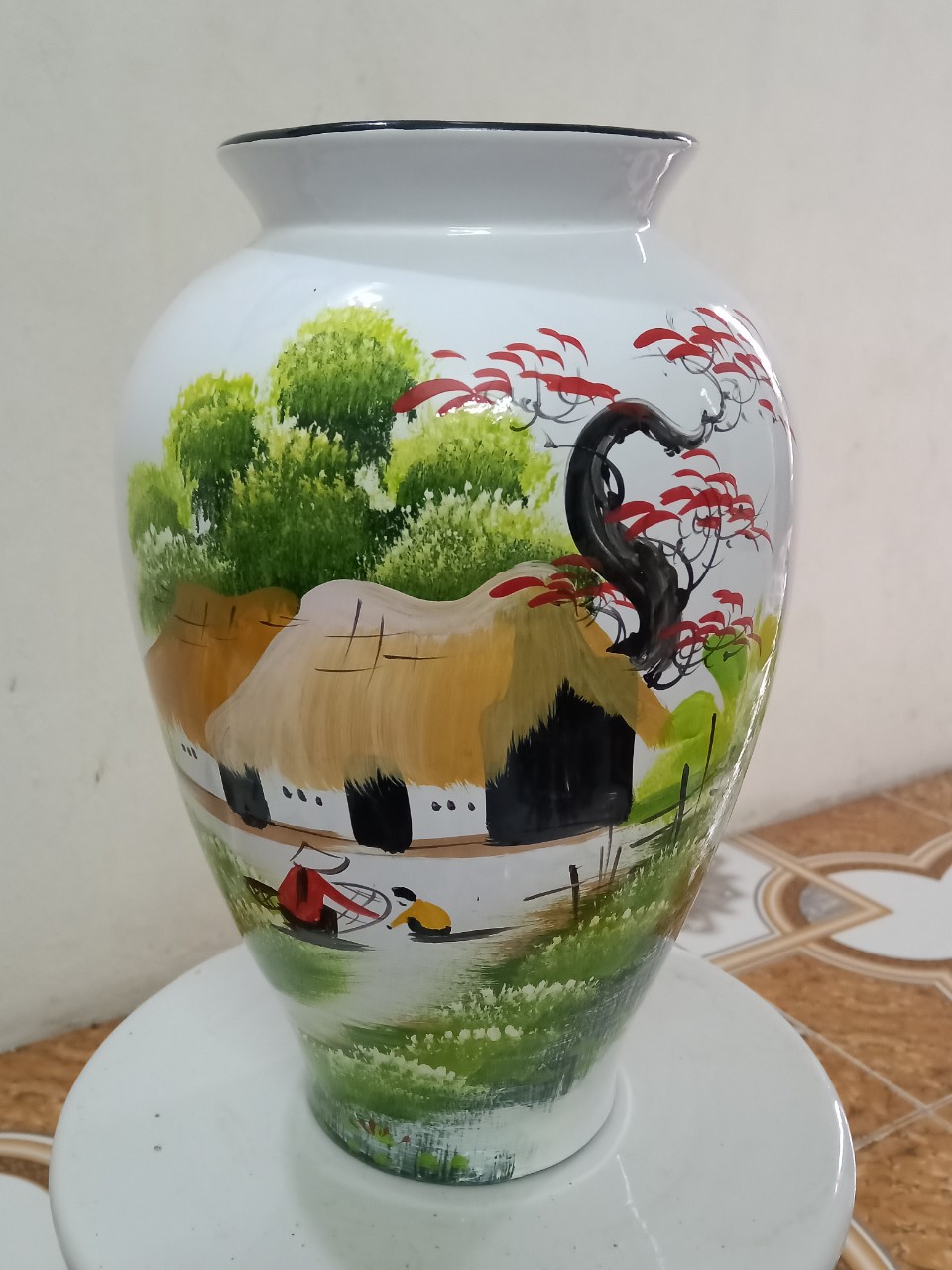 Lọ hoa được vẽ tay với chất liệu gốm sứ Bát Tràng Được vẽ tay tỉ mỉ ,trau chuốt có giá trị không bởi tay nghề của người thợ vẽ gốm mà còn ở con