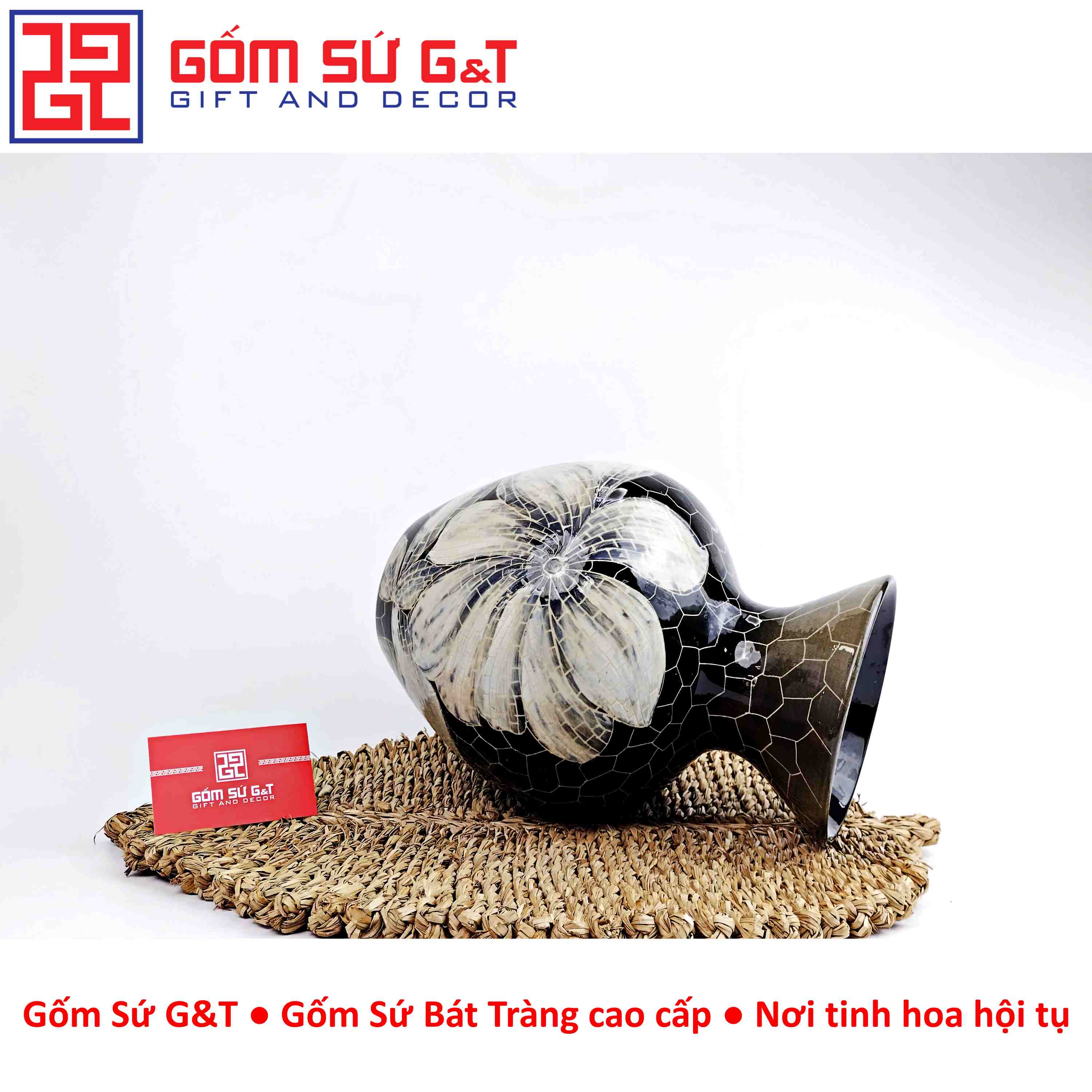 Phong cách hiện đại: Mix cùng đồ decor kim loại, tạo sự tương phản. Địa Chỉ Mua Hàng Uy Tín – Gốm Sứ Bát Tràng Chính Hãng Bạn muốn sở hữu lọ hoa mosaic miệng loe khắc hoa loa kèn chính hãng? Hãy đến với: Cửa hàng Gốm Sứ G&T – Địa chỉ uy tín hàng đầu Việt Nam. Cam kết chất lượng: Bảo hành 1 đổi 1 nếu lỗi do nhà sản xuất. Giao hàng toàn quốc: Miễn phí vận chuyển cho đơn hàng từ 300k. Thông tin chi tiết Kích thước Cao 29 cm Miệng 16 cm Họa tiết Hoa loa kèn Thành phần 1 lọ hoa Nhiệt độ nung 1300 độ C Màu sắc Đen Xuất xứ Bát Tràng - Việt Nam Chất liệu Gốm sứ cao cấp In logo Theo yêu cầu Đặc tính sản phẩm An toàn sức khỏe, thân thiện môi trường