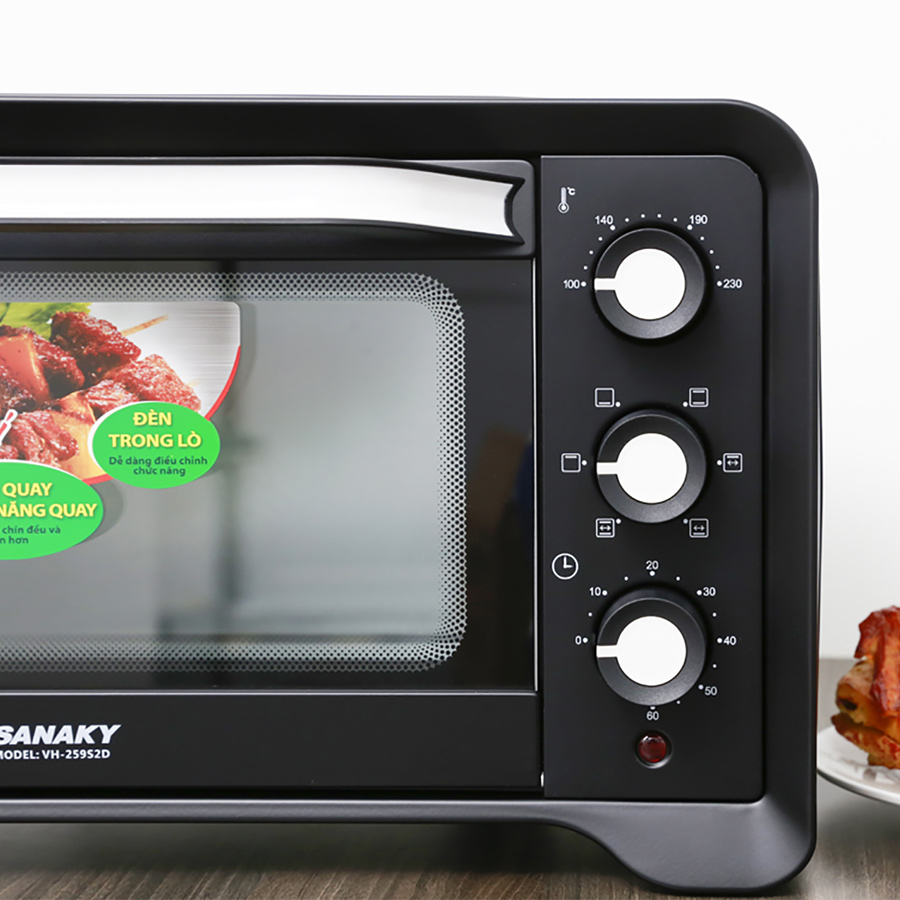 Thông số kỹ thuật MODEL VH-5099N2D Dung tích 50 lít Công suất 2000 (W) Nguồn điện 220V/50Hz Kích thước 568 x 425 x 356 (mm) Trọng lượng 11.3 kg Lò Nướng Sanaky VH-5099N2D: – Cửa