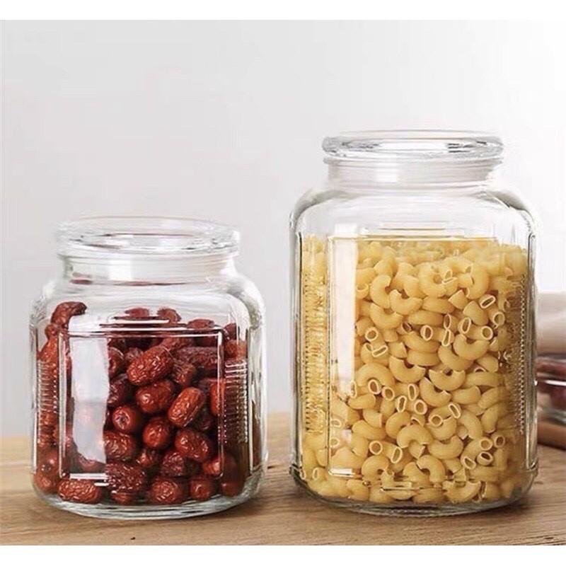 ✨lọ thủy tinh đựng gia vị, hạt, đồ khô hình vuông nắp gioăng cao su 3 cỡ