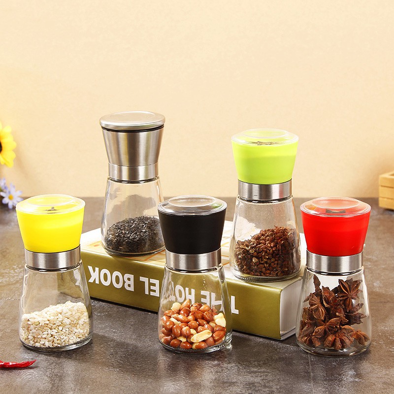 Máy Xay Tiêu Cầm Tay Thủy Tinh Dụng Cụ Cối Xay Tiêu Nắp Inox Vặn Tay
