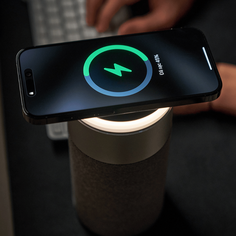 Bước 5: Để sạc không dây cần cắm dây sạc trực tiếp mới có thể sạc không dây được. Phần Pin 1.800mAh dành riêng để cho loa không để sạc thiết bị. Nên sử dụng bộ sạc có công suất 20W trở lên để cấp nguồn.