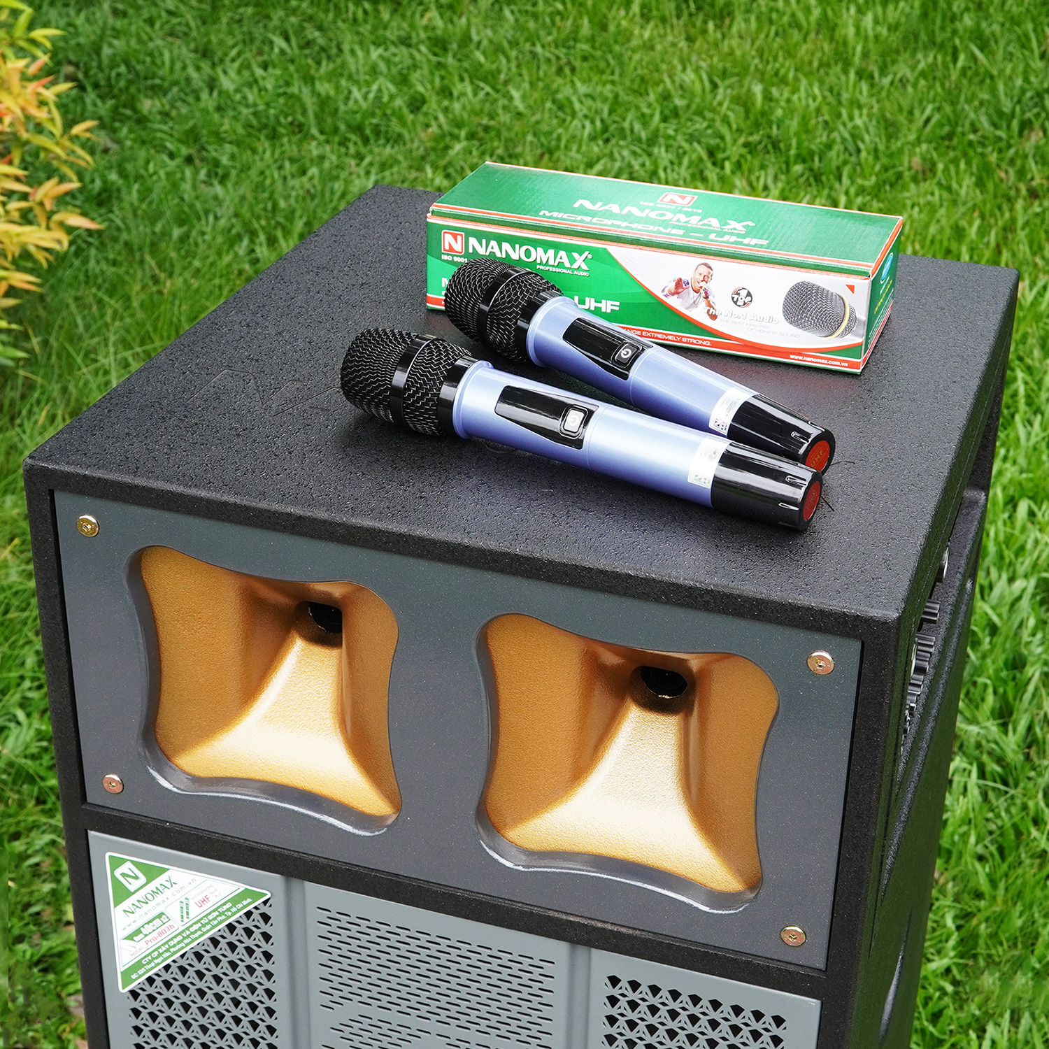Loa Kéo Nanomax SK-0209 Bass 40cm (4 Tấc) Công Suất 650w Hát Karaoke Bluetooth Bao Xa Tặng 2 Micro Không Dây Tùy Chỉnh Tần Số UHF Và 4 Pin AA. THÔNG SỐ LOA KÉO NANOMAX