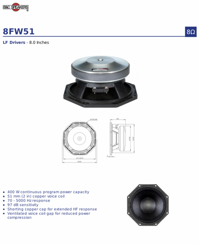 Voice coil loa B&C SPEAKERS 8FW51 được thiết kế có độ thông thoáng nhất định giúp bảo vệ loa. Khối lượng: 5.3 kg