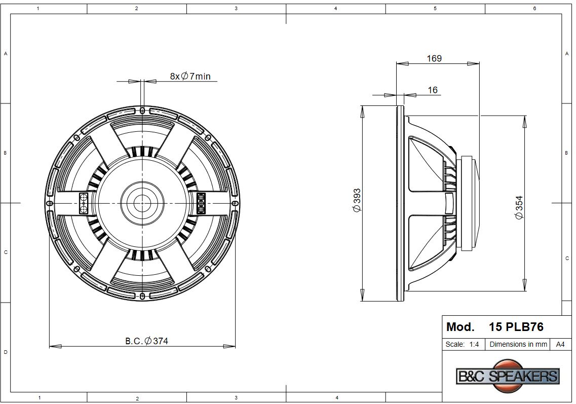 ✨Loa Rời 4 TẤC B&C SPEAKERS 15PLB76 (1 cái) – Hàng Chính Hãng