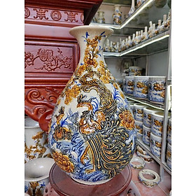 Bình hút tài lộc gốm sứ Bát Tràng cao cấp vẽ vàng hoạ tiết thuận buồm xuôi gió Cao 35cm Đk bụng 32cm Giá : 3800k / bình