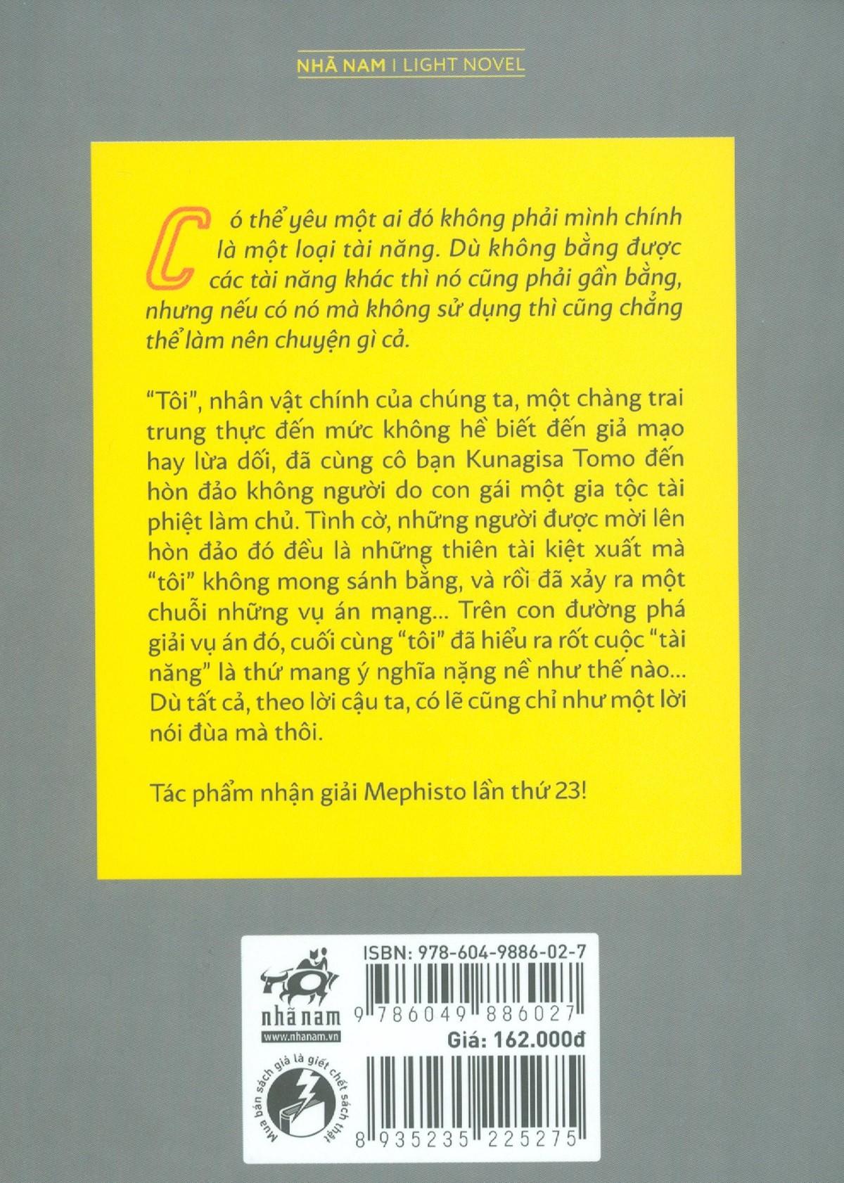 "Tôi", nhân vật chính của bộ truyện, đã cùng người bạn là kỹ sư thiên tài của mình đến du lịch ở một hòn đảo tụ hội rất nhiều thiên tài trong các lĩnh vực khác. Nhưng cuối cùng họ đã mắc kẹt vào một chuỗi án mạng vô cùng bí ẩn. Trong lúc phá giải vụ án này, cuối cùng "tôi" đã hiểu được rốt cuộc tài năng là thứ mang ý nghĩa nặng nề đến nhường nào.