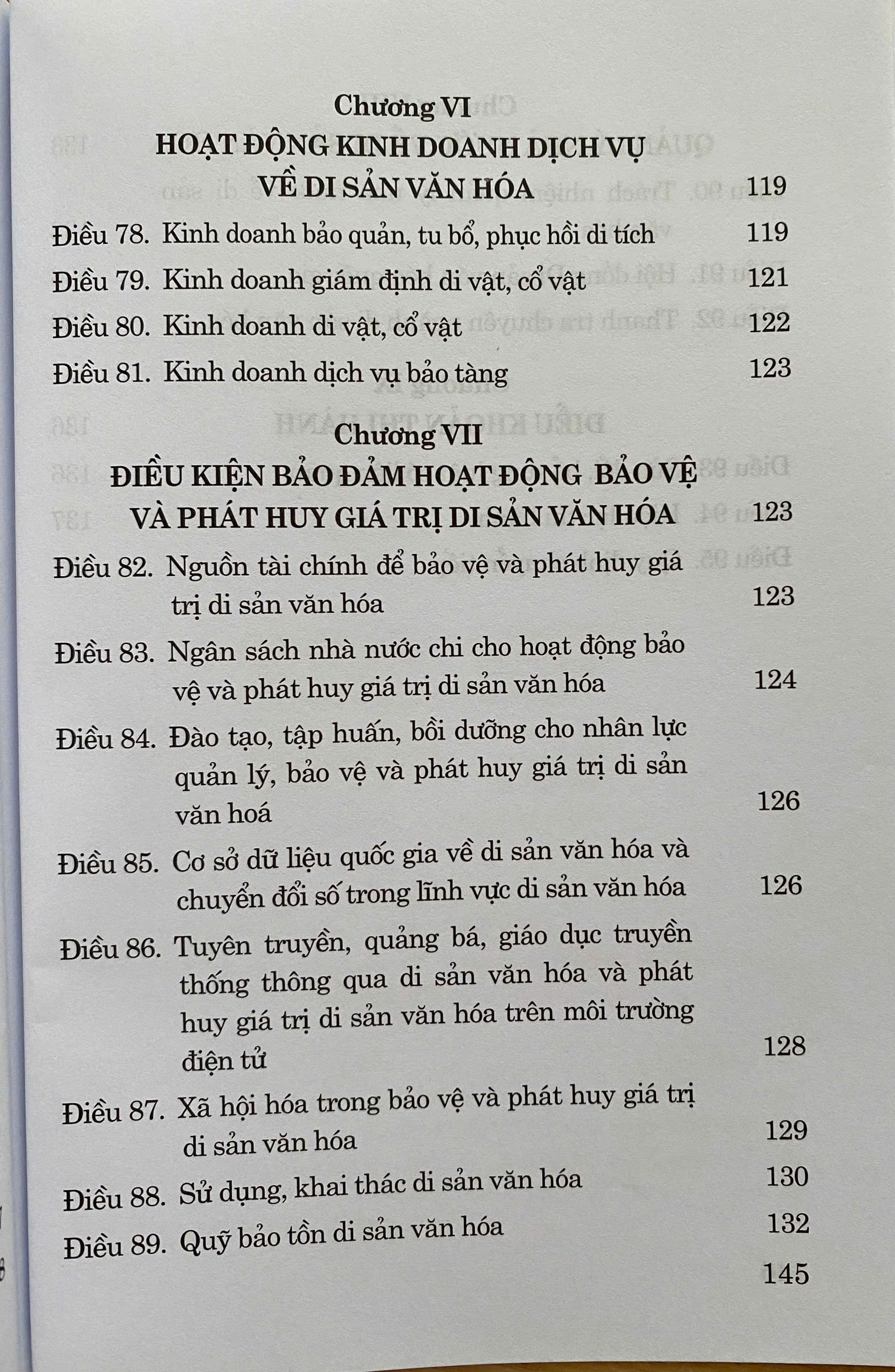 Mua tại TiktokLuật Di Sản Văn Hoá số 45/2024/ QH15 đã được Quốc Hội thông qua ngày 23 tháng 11 năm 2024. Luật gồm có 9 chương, 95 điều. Luật có hiệu lực áp dụng từ ngày 01 tháng 07 năm 2025.
