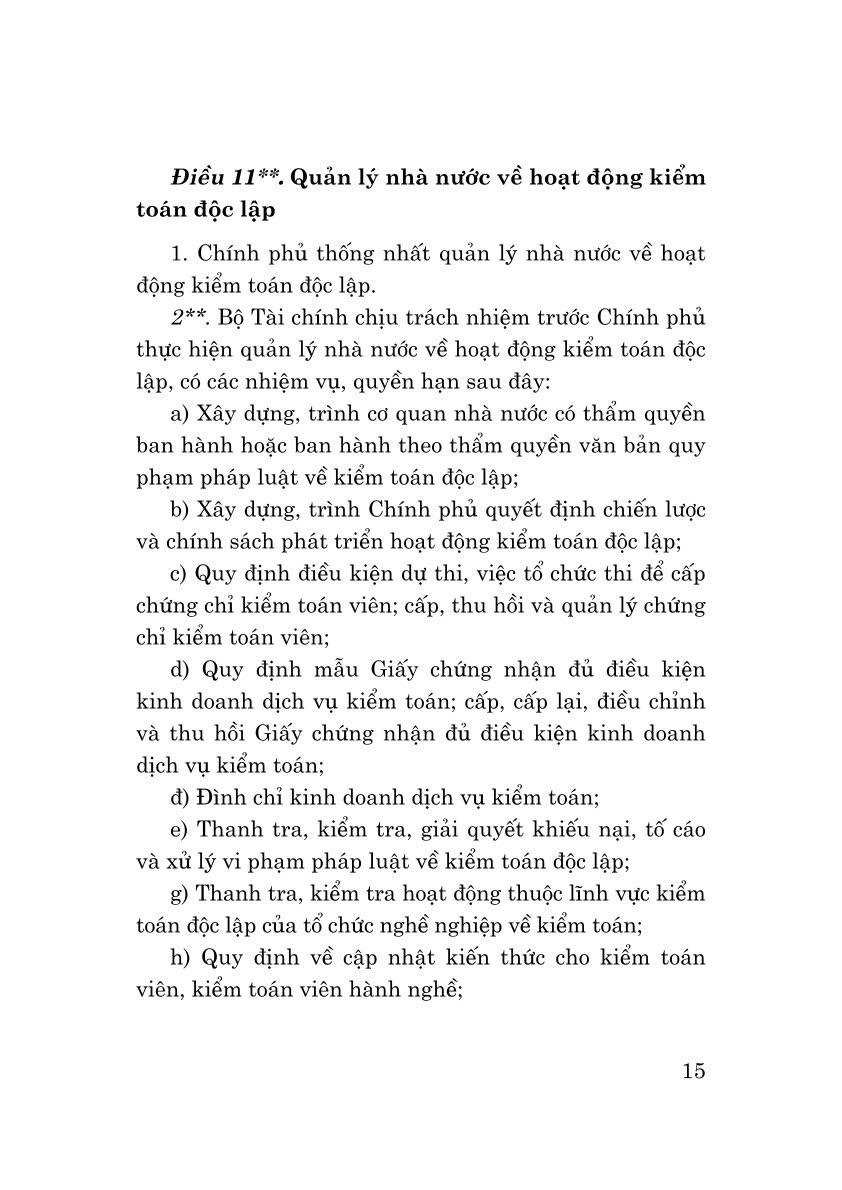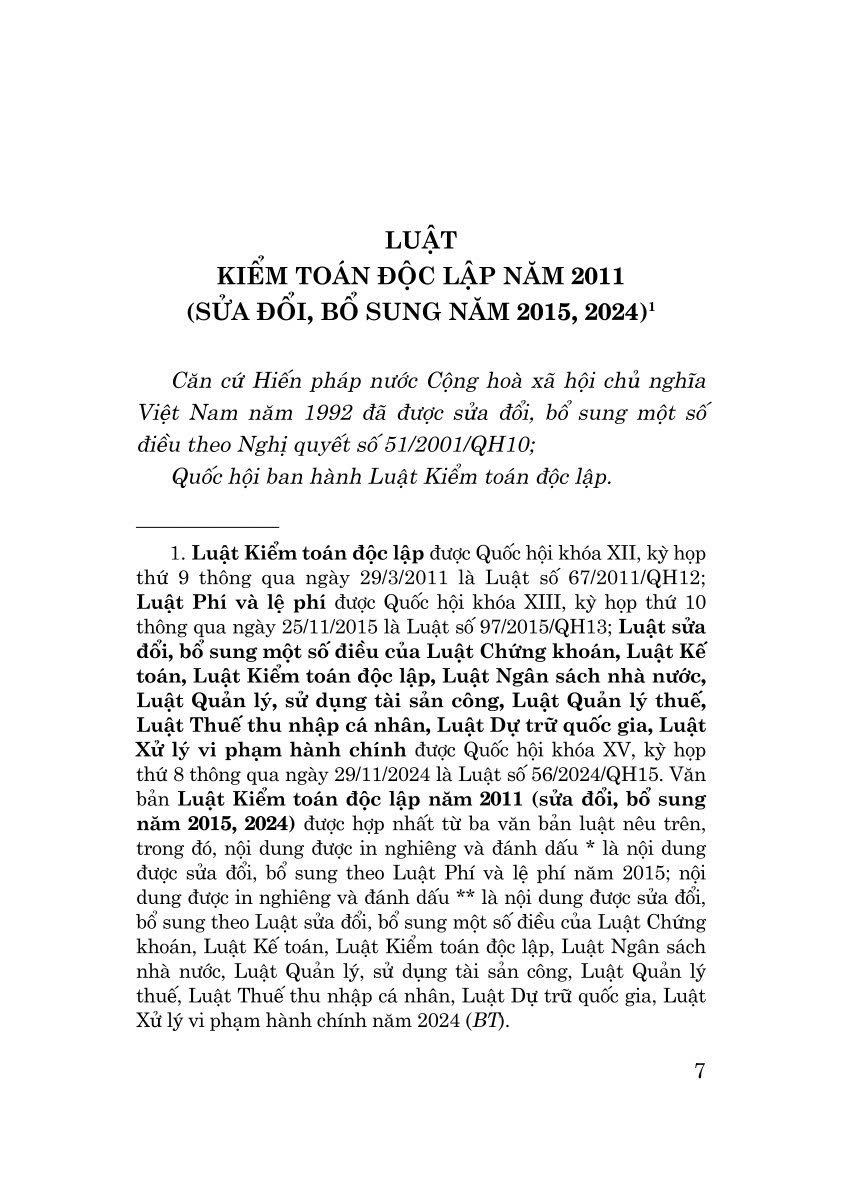 Mua tại TiktokCuốn sách gồm toàn văn Luật Kiểm toán độc lập năm 2011 (sửa đổi, bổ sung năm 2015, 2024)