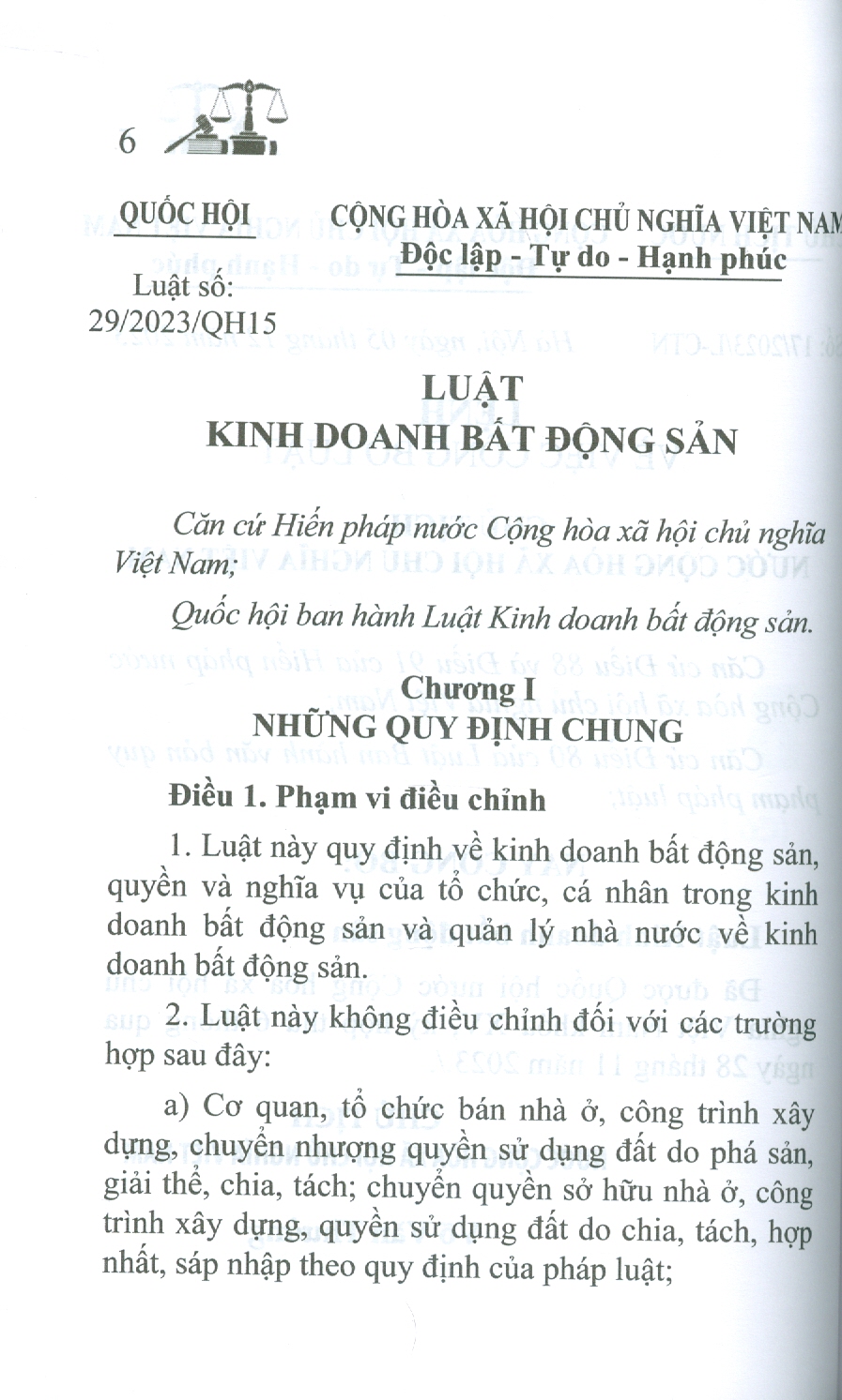 Luật kinh doanh BĐS 2023 áp dụng từ ngày 01 tháng 08 năm 2024 - Phần 1