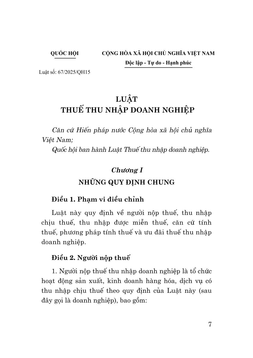 Toàn văn Luật Thuế thu nhập doanh nghiệp số 67/2025/QH15 | Hiệu Lực 1/10/2025