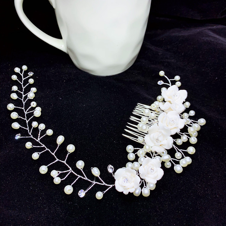 ✨Lược cài tóc hoa trắng trang điểm cô dâu, dạ tiệc