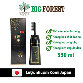 Lược nhuộm tóc Dầu Gội Phủ Bạc Thảo Dược Komi Nhật Bản [350ml ~ Hàng Chính Hãng] Mô tả : Ưu điểm vượt trội : ✓ Không phải pha trộn như thuốc nhuộm thông thường ✓ Không bị xơ tóc khi sử dụng ✓ Kích thích tóc con mọc ra màu đen. ✓ Tiện lợi khi sử dụng, có thể gội ngay tại nhà. ✓ Khi gội bọt có màu trắng. Không dính da đầu và da tay ✓ Là dầu gội đầu, hương thơm dễ chịu, không dính da đầu. ✓ Chiết xuất từ thảo dược tự nhiên quý hiếm làm tóc hấp thụ dễ dàng   Khắc phục 5 nhược điểm : ✓ Dung tích gấp đôi sản phẩm trên thị trường → mà Giá cả hợp lý, sử dụng dễ dàng ✓ Tiết kiệm thời gian cho bạn không phải phụ thuộc và chờ đợi thợ nhuộm tóc ✓ Tóc mềm, mượt không bị tẩy màu nên vẫn giữ được cấu trúc vốn có của tóc ✓ Sản phẩm có nguồn gốc thảo dược, không gây kích ứng da so với thuốc nhuộm tóc.   Dành cho : ✓ Người già cần phủ bạc ✓ Giới trẻ muốn cải thiện mái tóc ✓ Những ai muốn tiết kiệm chi phí và thời gian ✓ Những ai muốn đổi màu tóc nhưng ngại hoá chất độc hại   HD Sử dụng : ✓ 1 : Đảm bảo tóc khô và sạch ✓ 2 : Đeo bao tay và phụ kiện kèm sẵn trong hộp ✓ 3 : Ấn lược nhuộm để lấy một lượng dầu gội thoải mái rồi chải đều lên tóc ✓ 4 : Chải đều tóc từ chân đến ngọn trong khoảng 2 phút ✓ 5 : Ủ tóc trong khoảng 10 phút (màu đen) và 40 phút (màu thời trang) sau đó xả lại bằng nước sạch   Thông tin sản phẩm : ️- Đóng gói : Chai / Hộp ️- Dung tích : Chai 350 ml ️- Màu sắc: Đen tự nhiên, Nâu cà phê, Nâu đen, Nâu hạt dẻ, Nho tím, Nâu lạnh, Xanh đen ️- Xuất xứ : Sản phẩm đến từ công nghệ Nhật Bản ️- Thành phần : Các thảo dược quý và có nguồn gốc 100% thiên nhiên tốt cho tóc : Nhân sâm Mật ong Tinh dầu ô liu Nước ép trái cây Morinda Citrifolia Nha đam Quả hàu Gừng Dầu Argan …