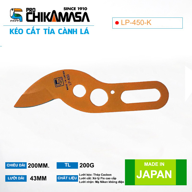 Mua tại TiktokLưỡi cắt dùng cho kéo cắt trợ lực Chikamasa LP-450-K Chiều dài lưỡi: 43mm Dùng cho LP-450 Xuất xứ: Japan