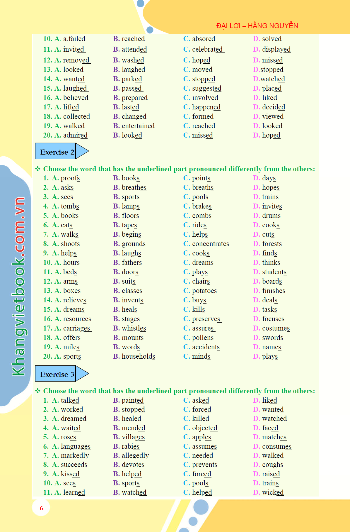 • Chương 1 : Ngữ Âm : gồm bài tập phát âm và bài tập trọng âm.