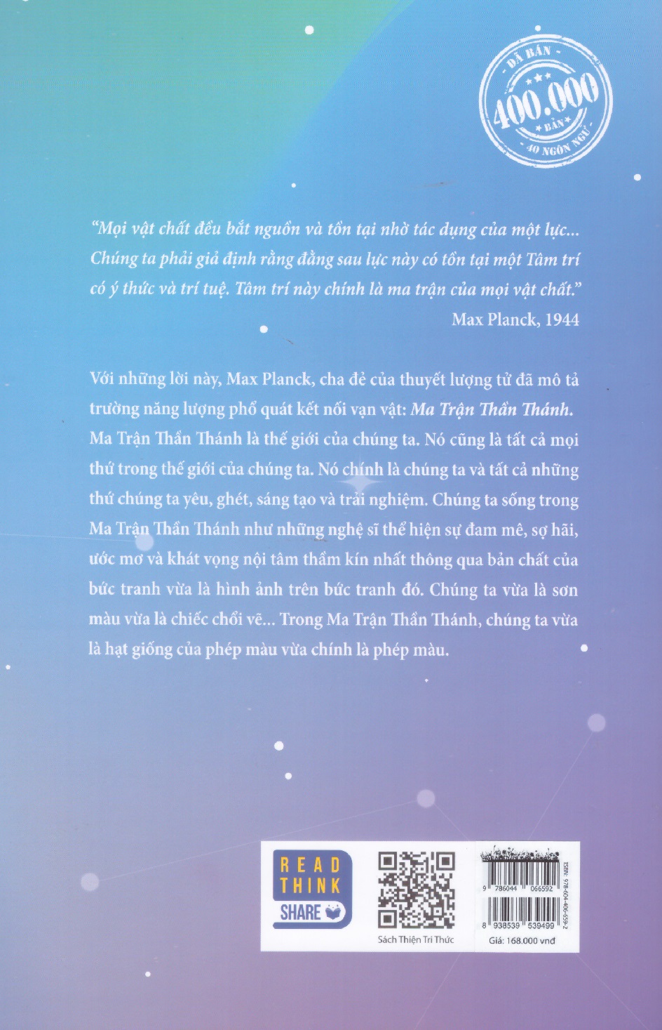 Cuốn sách Ma Trận Thần Thánh của tác giả Gregg Braden là một cuốn sách rất đáng đọc. Trong đó, tác giả đã khám phá và trình bày sự kết nối giữa mọi vật chất và sức mạnh của Tâm trí. Cuốn sách đã đưa ta vào thế giới của Ma Trận Thần Thánh, nơi chúng ta là những nghệ sĩ sáng tạo và trải nghiệm mọi thứ xung quanh mình.