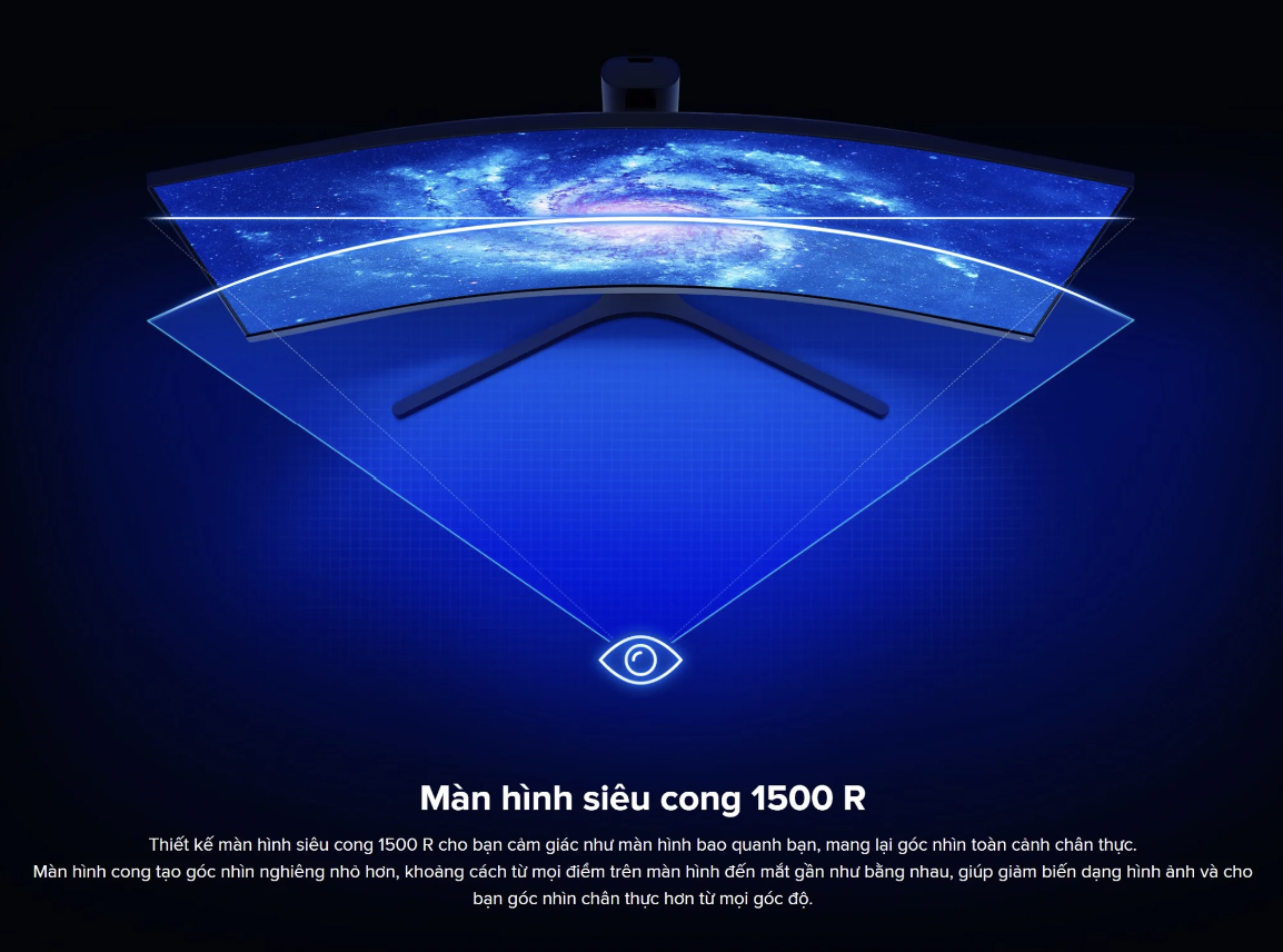 Độ cong cực cao 1500R tạo cảm giác như được bao quanh bởi màn hình