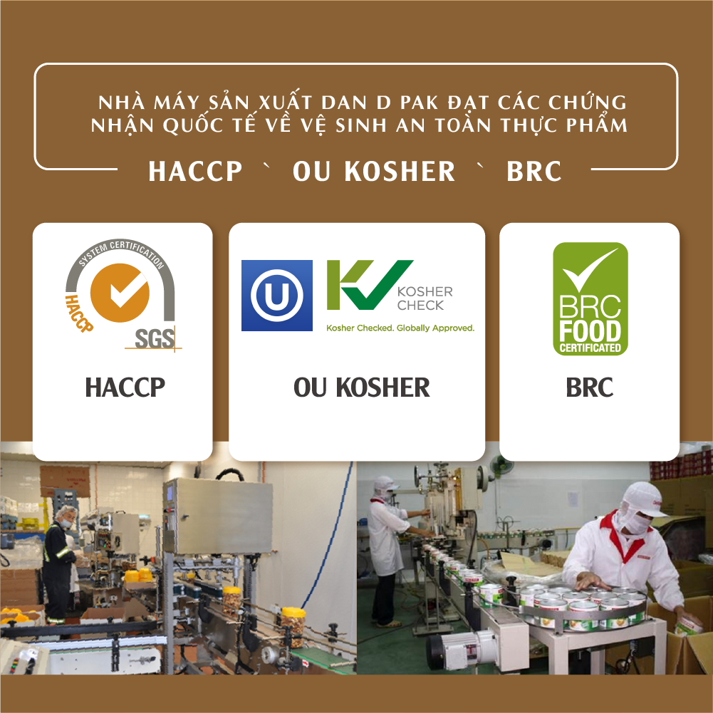 Xuất xứ: Việt Nam Date: 6 tháng kể từ ngày sản xuất, đảm bảo luôn mới nhất. Trọng lượng: Hũ nắp nhôm 500g. Hũ sang trọng, tay cầm chắc chắn, nhỏ gọn tiện lợi cho