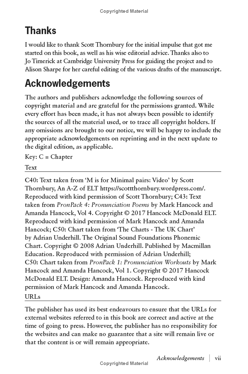 This compact, user-friendly book draws on Mark Hancock's wealth of experience and knowledge of the topic. It gives a broad overview of the practical issues and challenges involved in teaching pronunciation, provides practical tips for teachers and ses the questions of what to teach and how to teach it.