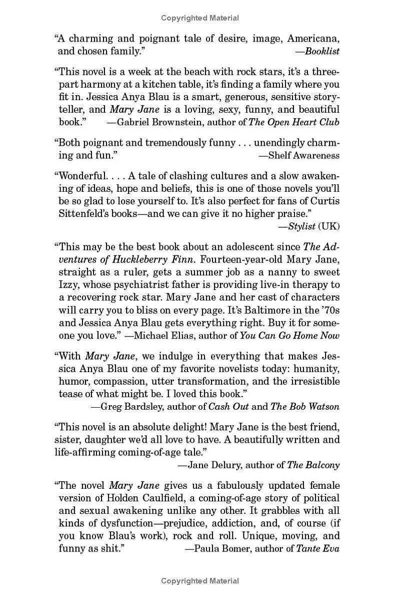 The house may look respectable on the outside, but inside it’s a literal and figurative mess: clutter on every surface, Impeachment: Now More Than Ever bumper stickers on the doors, cereal and takeout for dinner. And even more troublesome (were Mary Jane’s mother to know, which she does not): the doctor is a psychiatrist who has cleared his summer for one important job—helping a famous rock star dry out. A week after Mary Jane starts, the rock star and his movie star wife move in.