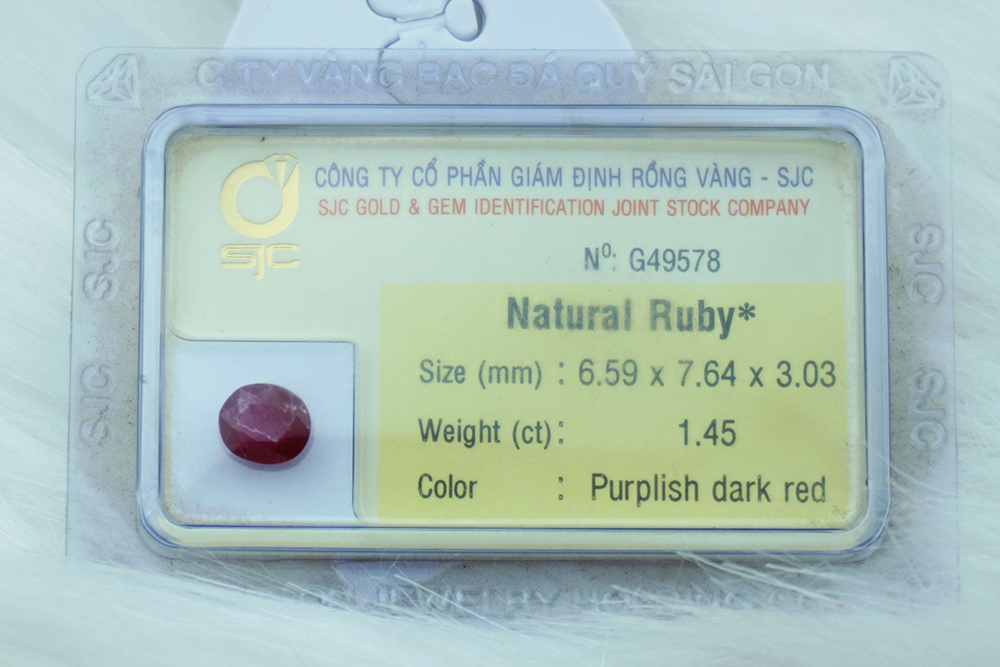 Chất liệu đá Ruby tự nhiên, đã kiểm định bởi SJC.