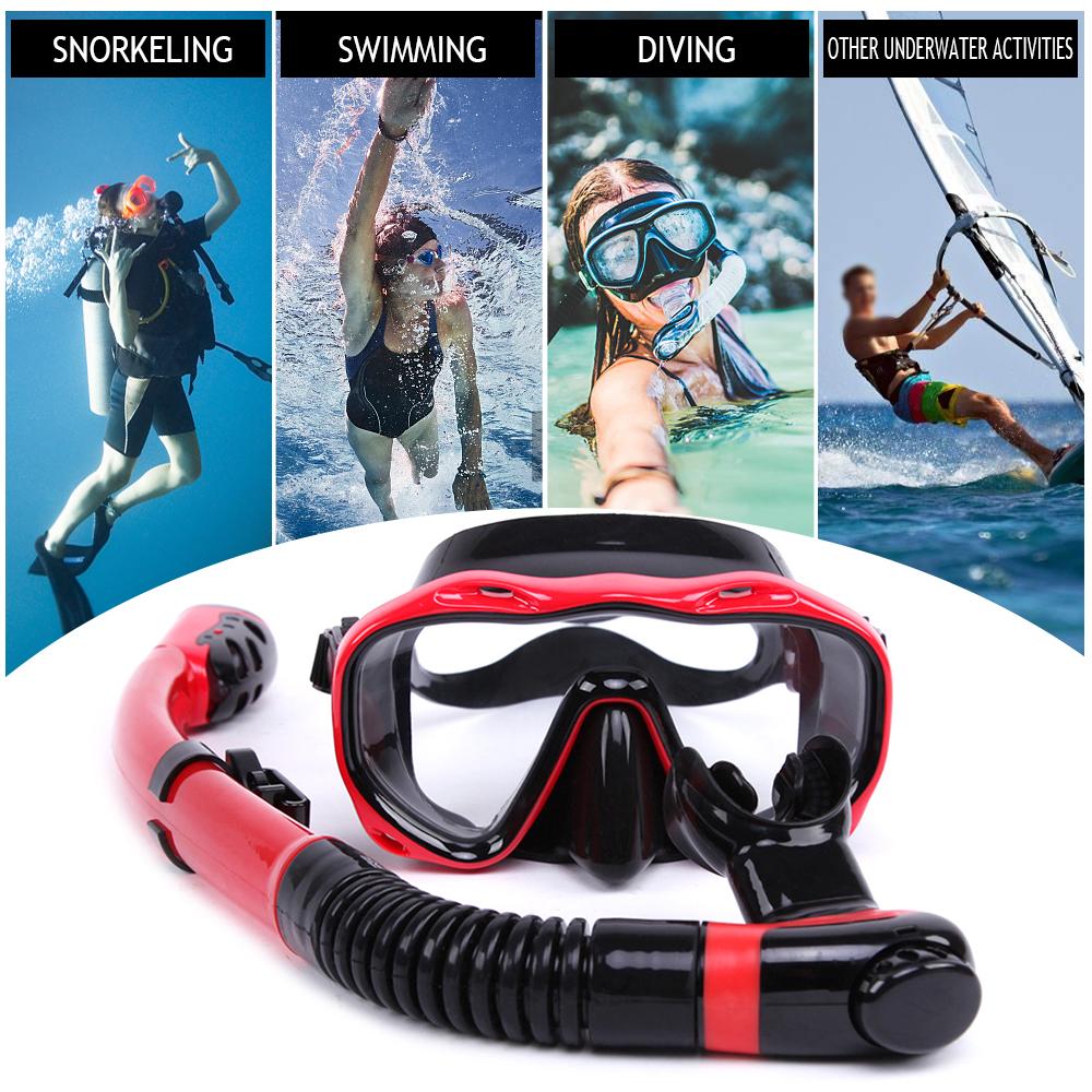This snorkeling set for adults comes with fully adjustable head straps and a high-grade silicon face skirt which molds to fit virtually any face shape. The ribbed design provides extra support and ensures a water-tight seal. Perfect for swimming, diving, snorkeling or other underwater activities