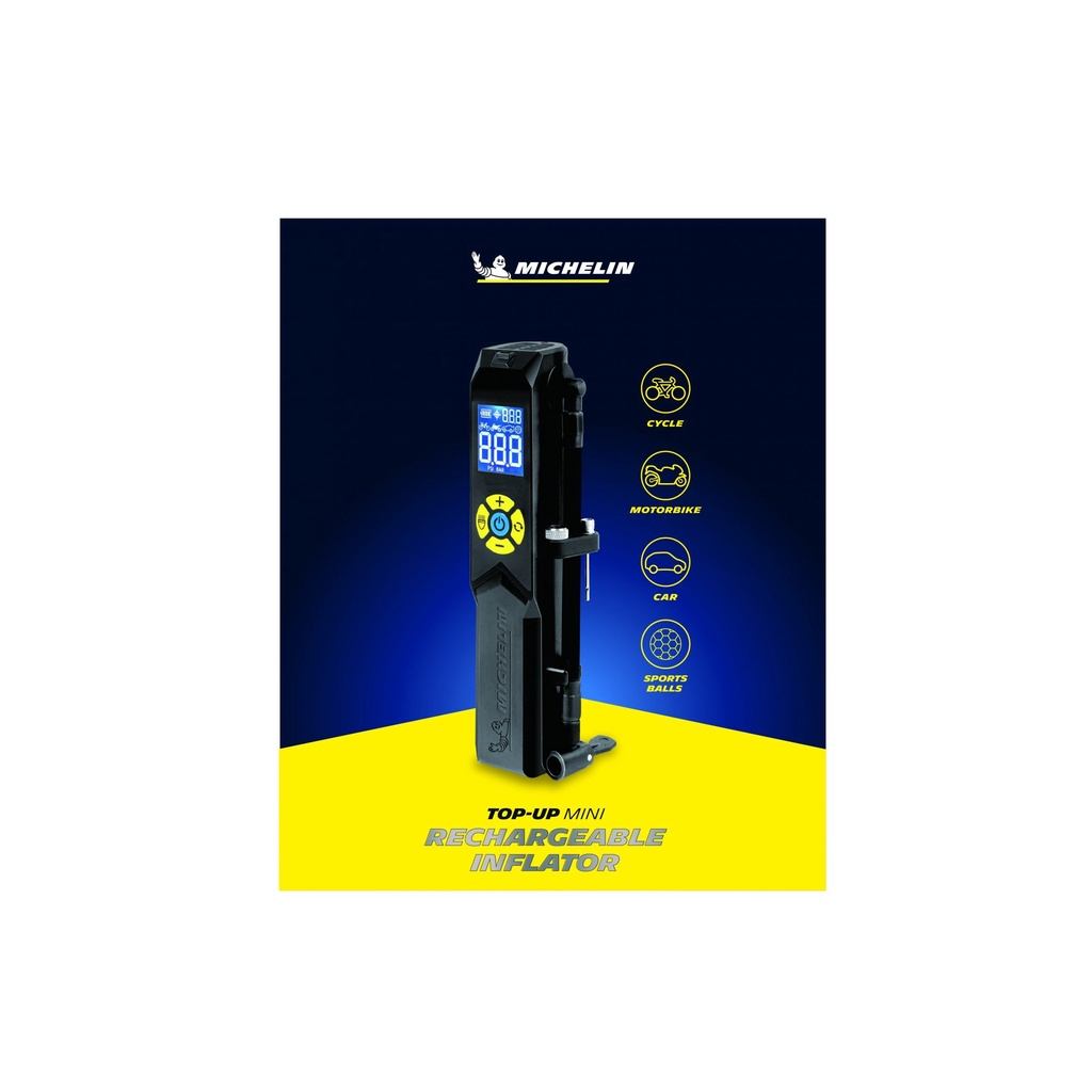 Máy Bơm Không dây, nhẹ và di động, máy bơm này rất dễ sử dụng. Với bốn chế độ cài đặt áp suất có thể lập trình trước, nó sẵn sàng bơm hơi lốp xe đạp, xe máy và ô tô cũng như một quả bóng thể thao.