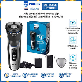 ✨Máy cạo râu khô và ướt cao cấp thương hiệu Philips S3206/09 Series 3000 tích hợp cạo mai - Hàng Nhập Khẩu