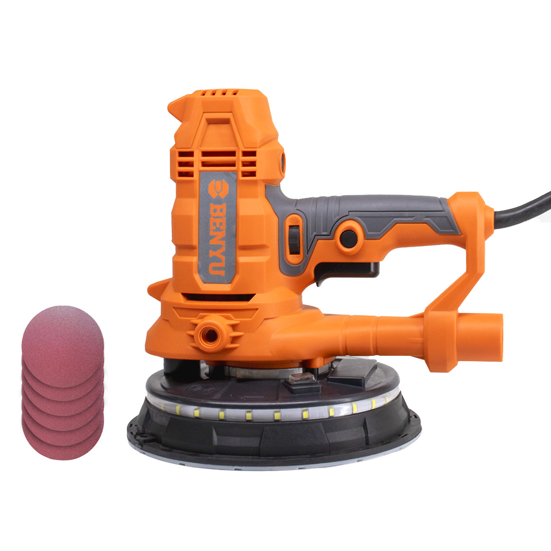 Máy chà nhám tường BENYU sử dụng đĩa chà có đường kính 180mm, thiết kế có các lỗ nhỏ để bụi bẩn sẽ được hút vào đó thông qua ống dẫn kết nối với túi bụi, giúp môi trường làm việc không bị ô nhiễm do bụi tường gây ra.