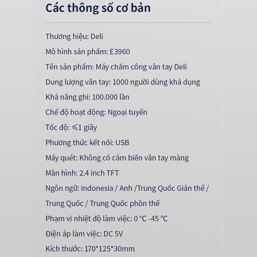 TÍNH NĂNG SẢN PHẨM: - Lưu trữ dấu vân tay lên tới 1000 vân tay - Dung lượng ghi: 100K - Chế độ làm việc: Ngoại tuyến - Có thể thay đổi 24 ca làm