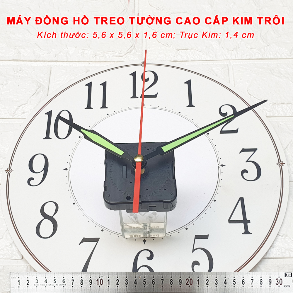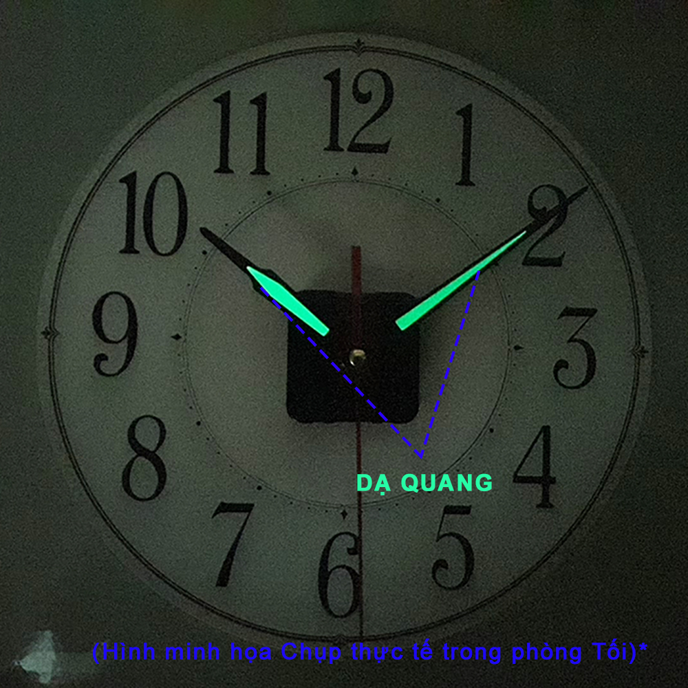 • Loại: Máy Đồng hồ Treo tường Kim dạ quang Công nghệ Thạch anh (Quartz) chạy kim (Analogue), Loại máy đồng hồ kim trôi chạy êm ái, không phát ra tiếng tíc tắc khi hoạt động.