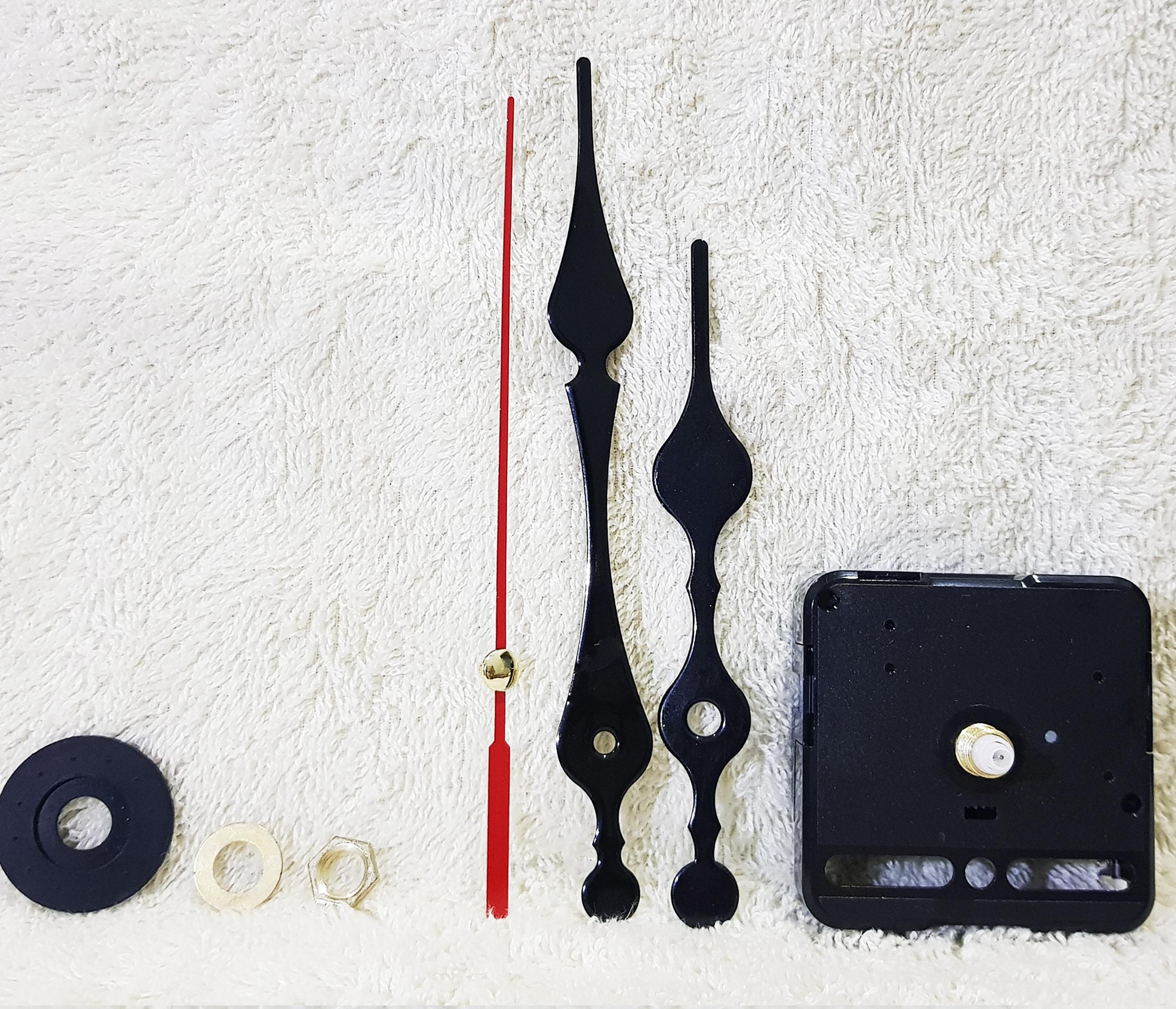 MÔ TẢ SẢN PHẨM Bộ linh kiện gắn đồng hồ treo tường, đồng hồ dán tường cỡ lớn bao gồm: 01 máy đồng hồ: Quartz (chạy 2 kim cỡ lớn) 01 bộ 2 kim (Kích