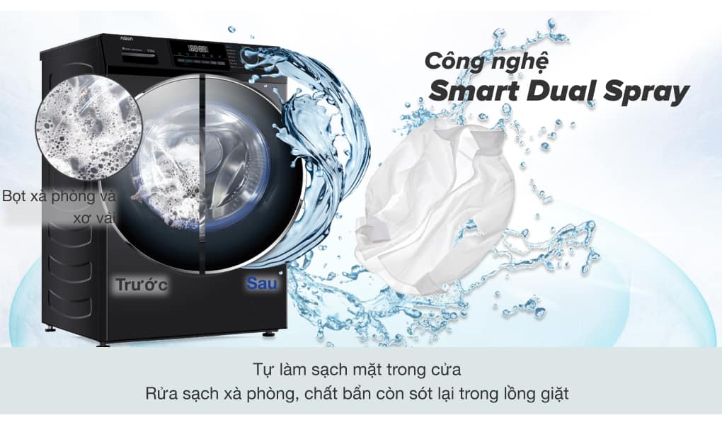 Máy giặt Aqua Inverter 12 kg AW12-BP4959U1K(B) không chỉ sở hữu lồng giặt lớn, máy còn được trang bị nhiều tính năng Smart Dual Spray, lại có thể tiết kiệm điện, tiết kiệm nước đáng kể