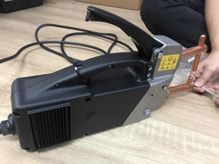–Tự động điều chỉnh dòng hàn hàn bấm (A) và thời gian hàn (t) theo độ dày vật liệu.