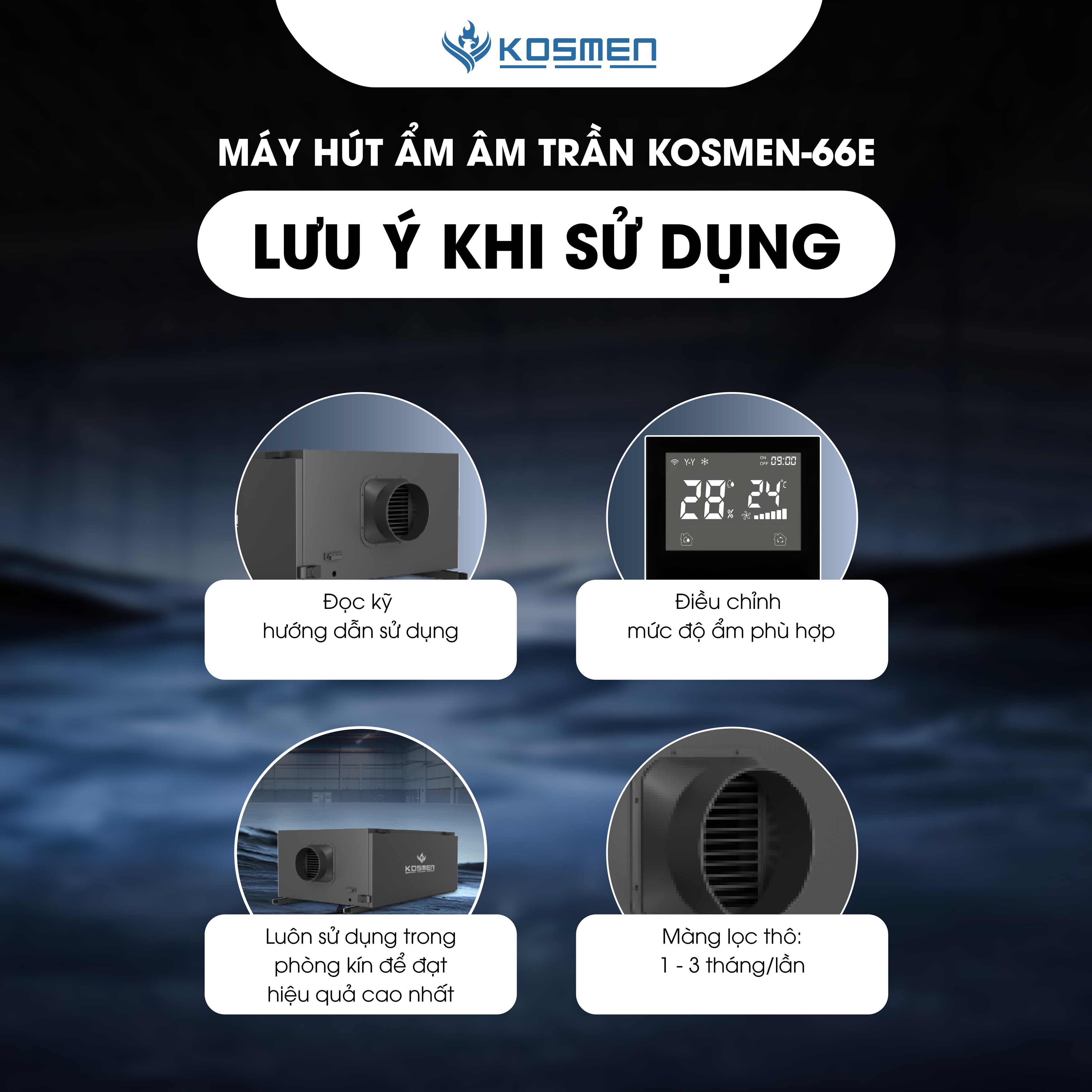 ✨Máy Hút Ẩm Âm Trần Kosmen KM-66E Màn Hình Cảm Ứng Kỹ Thuật Số - Hàng Chính Hãng BH 24 tháng