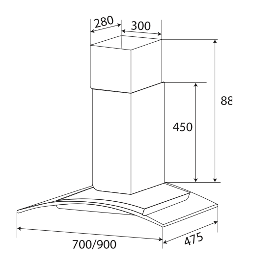 • Máy hút mùi kính cong • Thân bằng inox sáng đẹp • Kính cường lực dày 08mm tráng men bóng cao cấp • Điều khiển cảm ứng 3 tốc độ • Lưới lọc nhôm