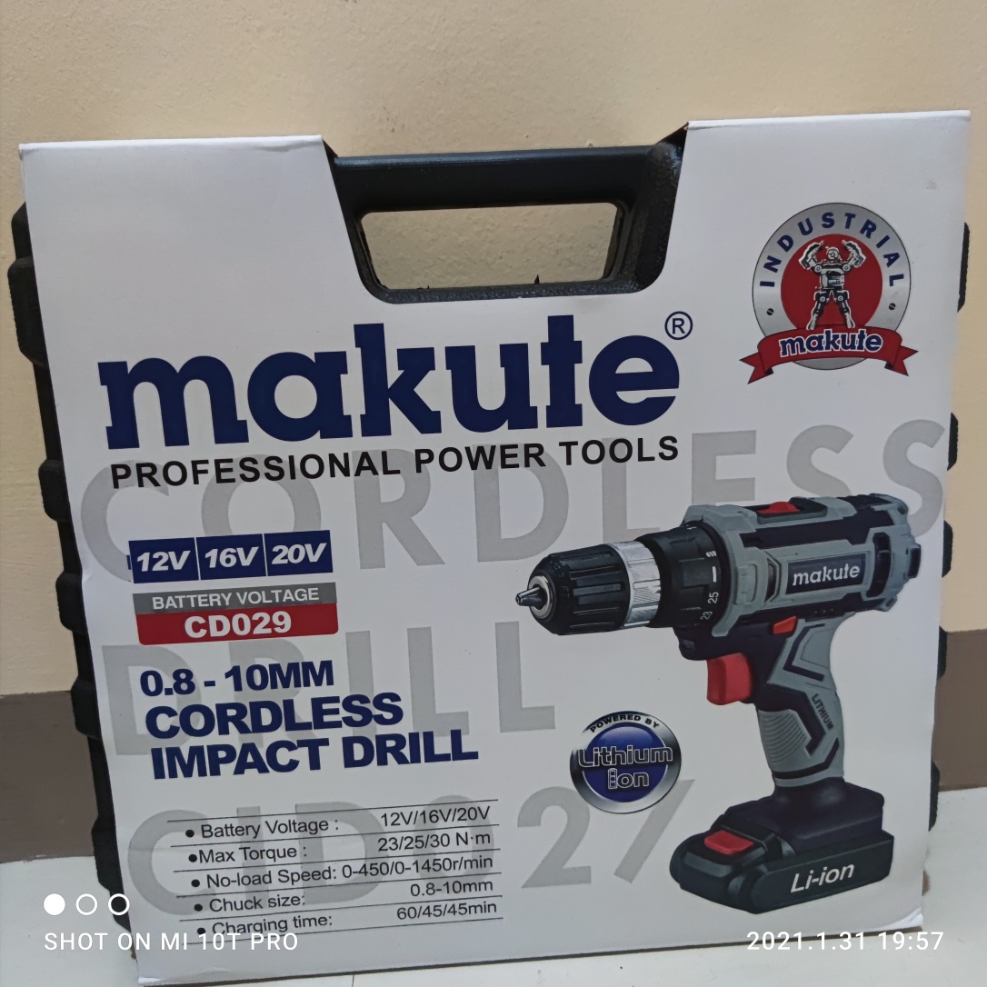 Ưu điểm nổi bật của máy khoan pin 20V Makute CD029 Makute CD029 đi kèm 2 pin sạc Li-ion 20V 1.5Ah, bộ sạc và hộp đựng chắc chắn. Trọn bộ sản phẩm Máy khoan pin 20V Makute
